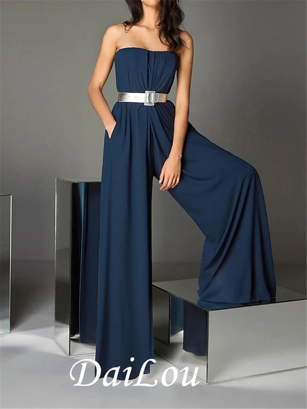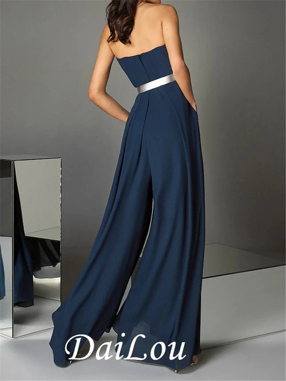Комбинезоны сексуальное платье для гостей свадьбы вечернее платье без бретелек без рукавов в пол шифоновое с поясомлентой 2021