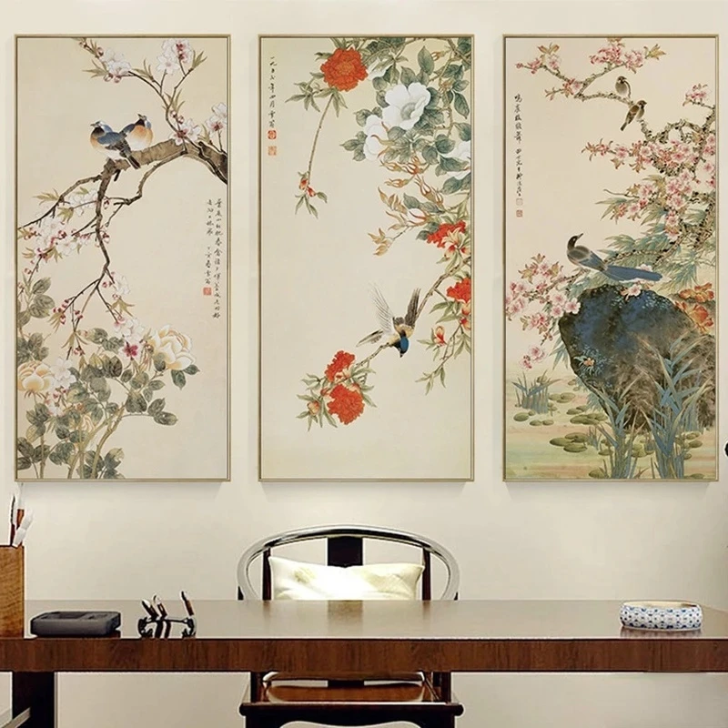Картина с цветами и птицами в китайском стиле, постеры на холсте дл...