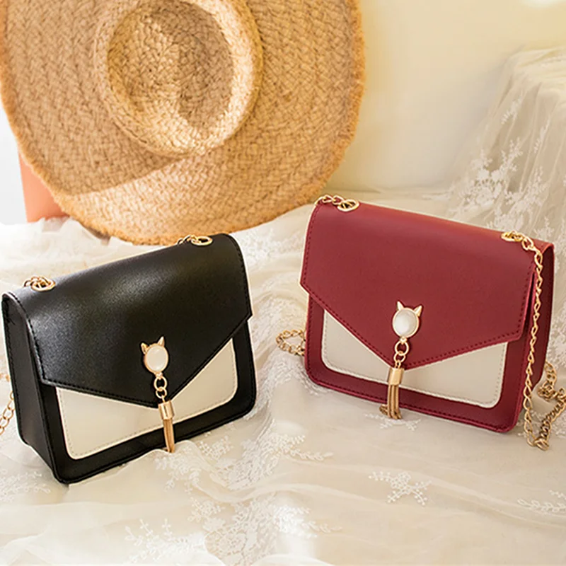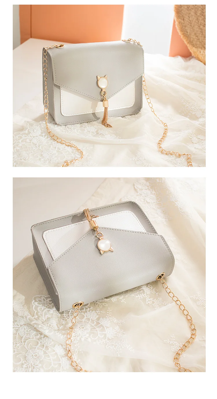 Роскошные дизайнерские сумки для женщин, маленькая квадратная сумочка на плечо с кисточкой и цепочкой, мессенджер через плечо с жемчугом и кошкой
