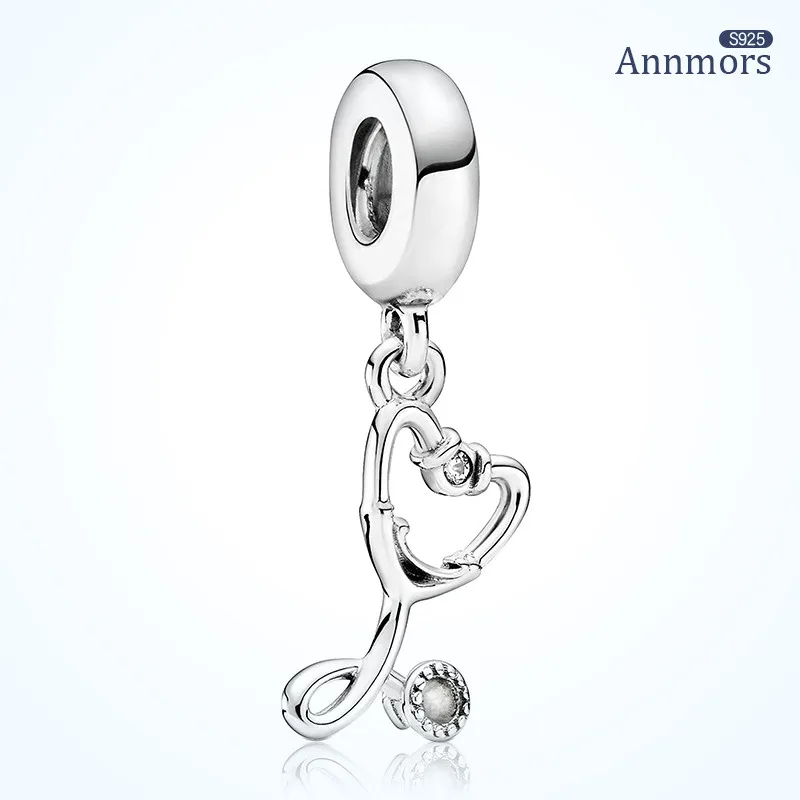 Серебряное покрытие в форме сердца, подходит для оригинальной модели Пандоры, для трибуны медицинскому персоналу, ювелирные изделия, подарочные бусины