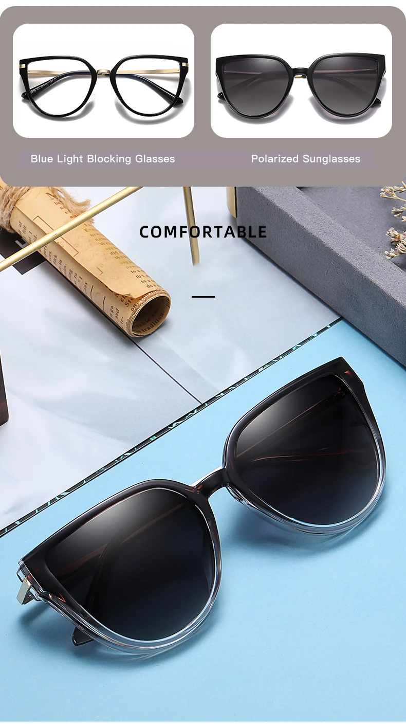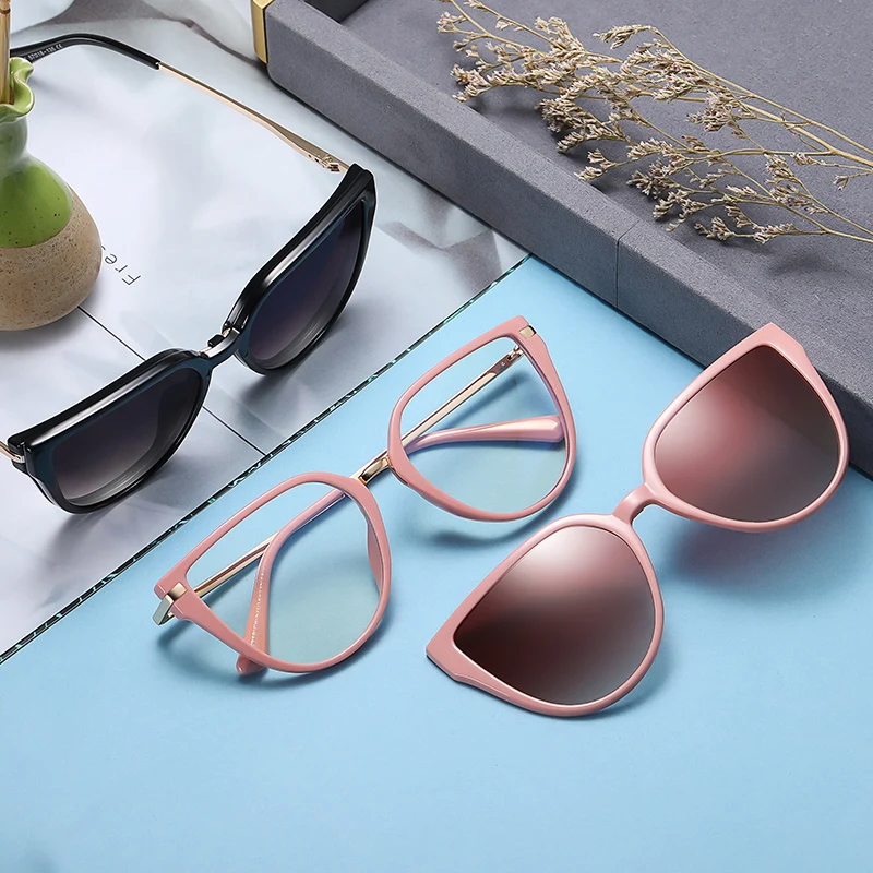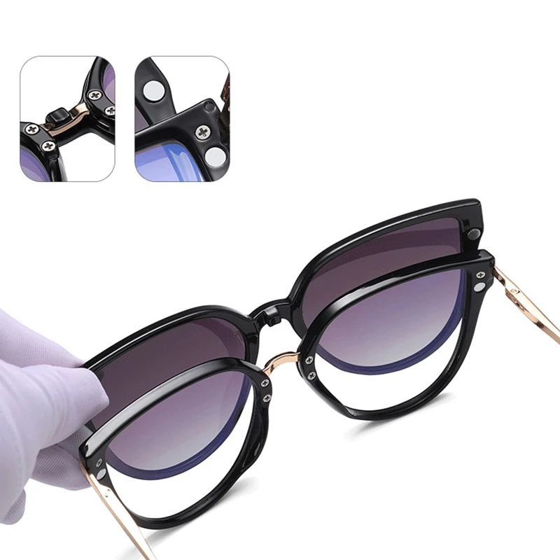 Женские магнитные поляризационные очки Kanspace, оправа кошачий глаз для близорукости, стильные солнцезащитные очки с клипсой, 2 в 1, 95318