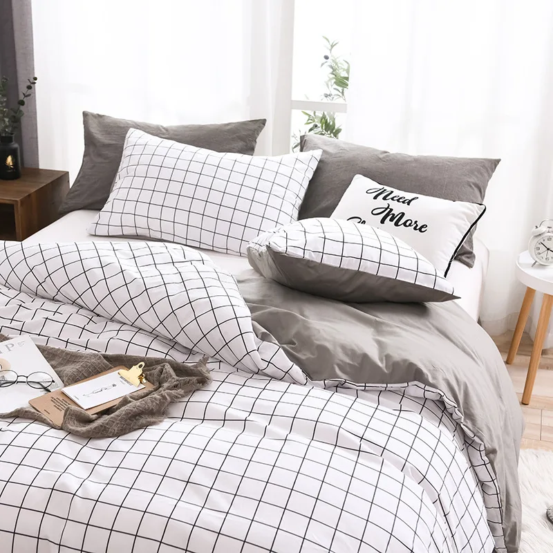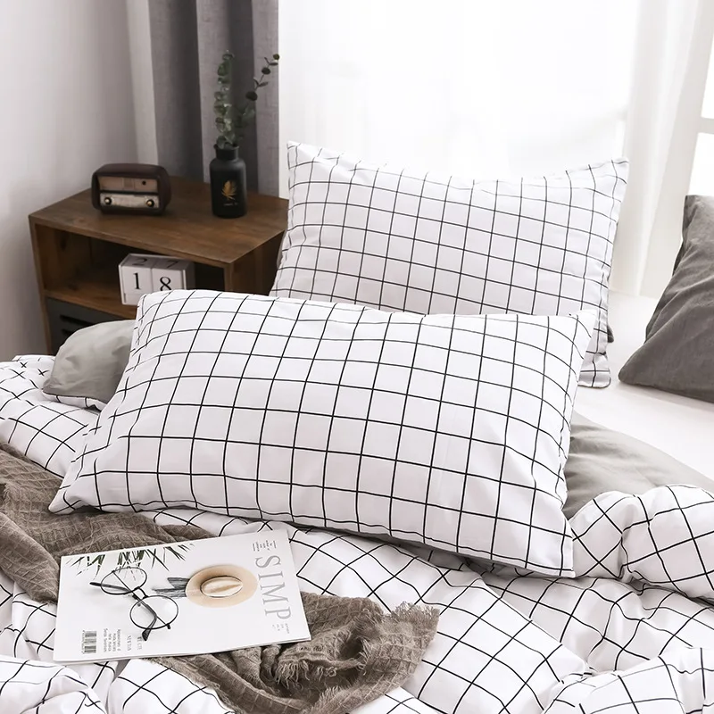 Комплект постельного белья из 100% хлопка, с принтом в клетку