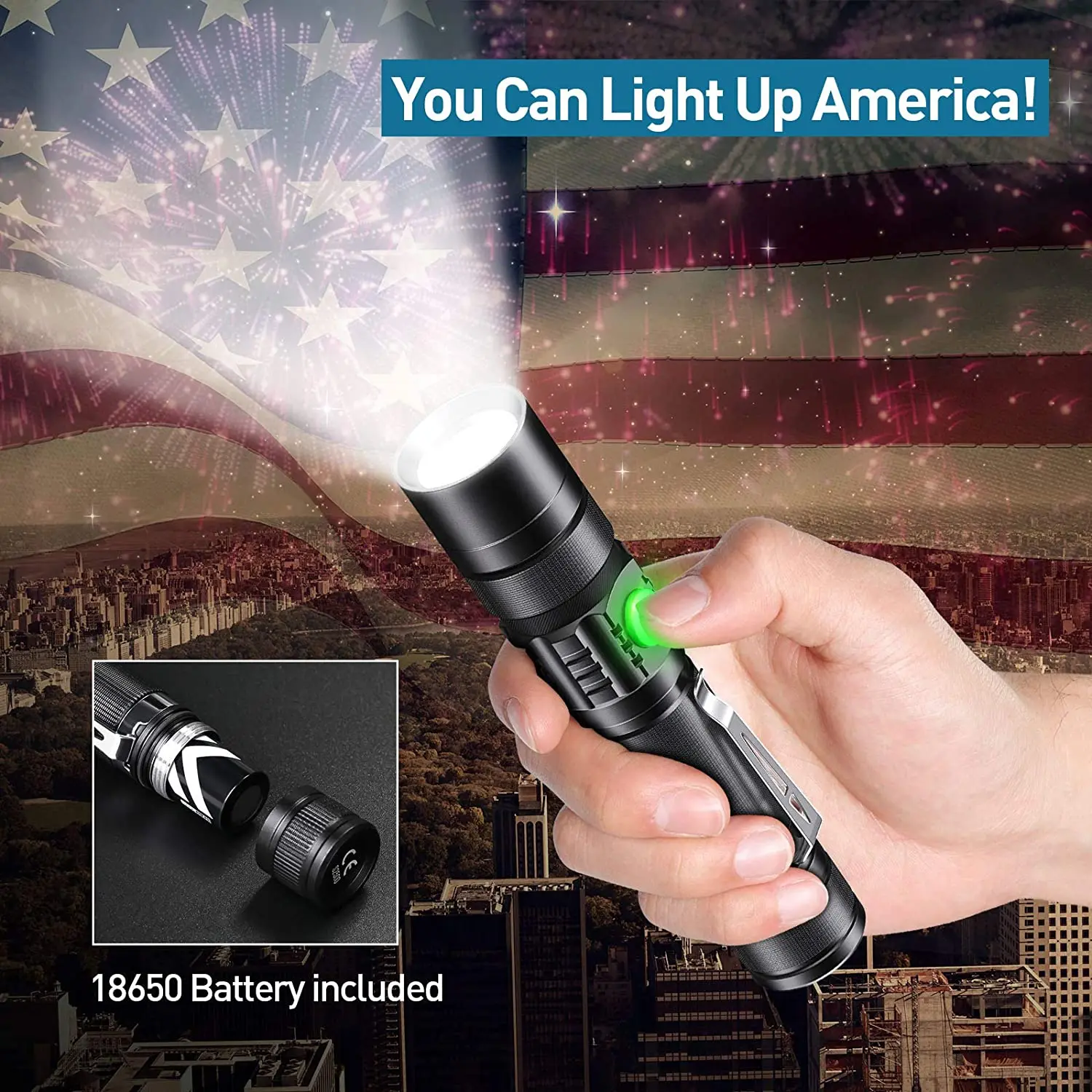 [Более яркий и долговечный фонарик]-новейшая СВЕТОДИОДНАЯ лампа V6 обеспечивает высокий световой поток 5000 и обеспечивает срок службы более 100000 часов, что делает перезаряжаемый фонарик самым универсальным и ярким фонариком. Он может легко осветить весь двор или сфокусироваться на объектах в пределах 1000 футов (около 304,8 метров). Идеальный светодиодный фонарик подходит для любого длительного путешествия.