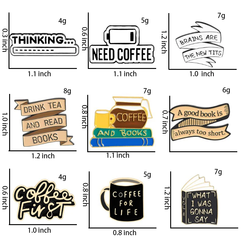 Эмалированная брошка на заказ в стиле панк для кофе и книг, металли...