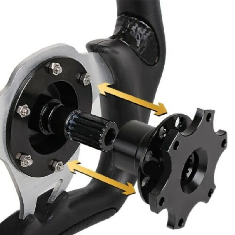 После установки базы рулевого колеса и этого быстроразъемного адаптера ступицы добавьте руль и вы можете использовать его.