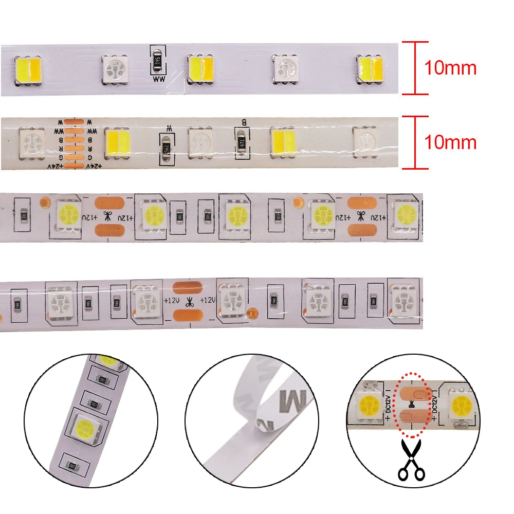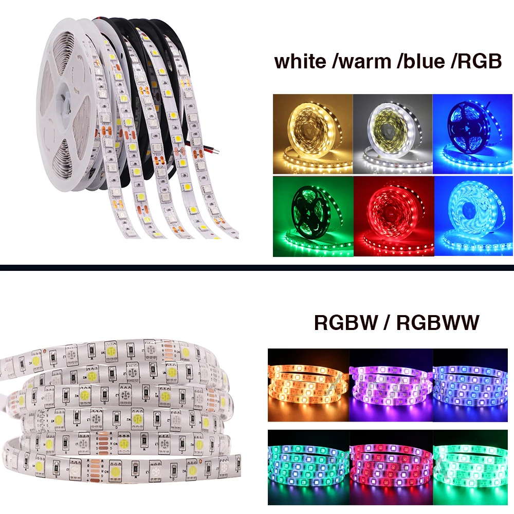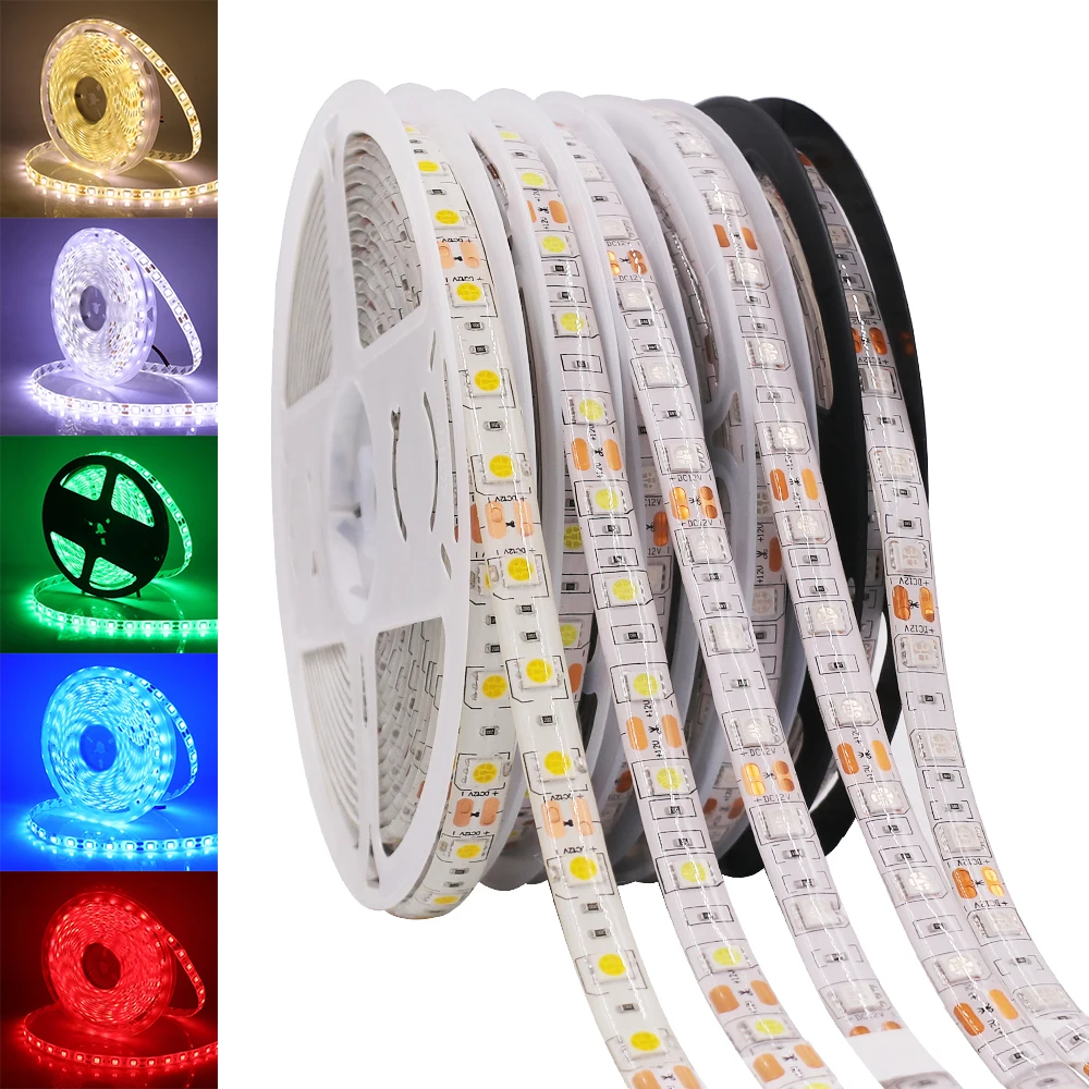 Светодиодная лента RGB RGBW RGBCCT, 12 В, 24 В постоянного тока, белыйтеплый белый IP21 IP65 IP67 60 светодиодовм 5050, гибкая светодиодная лента, Светодиодная лампа 5 м