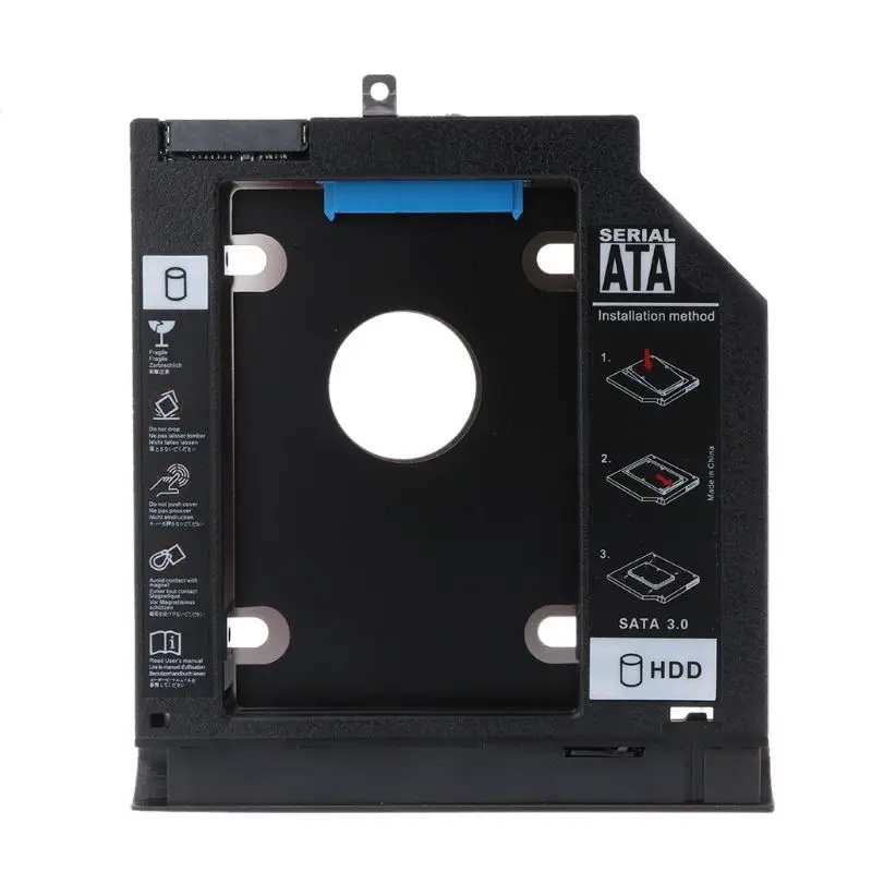 Внутренняя часть caddy имеет пластиковый держатель для поглощения шума и вибрации от 2-го жесткого диска/SSD.
