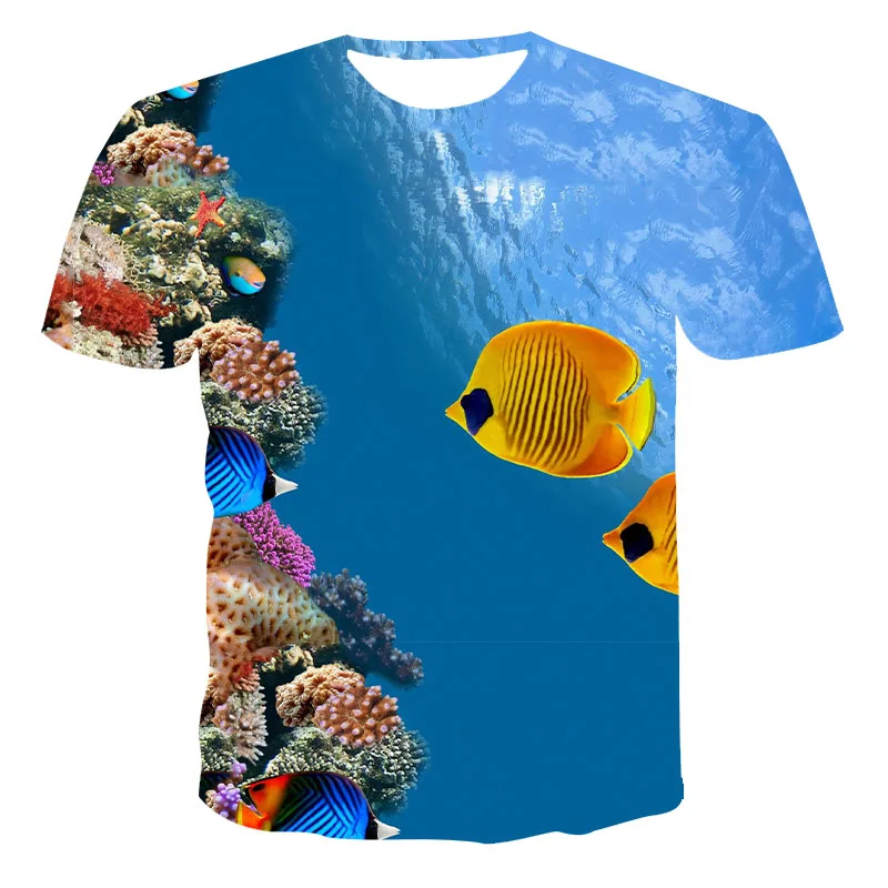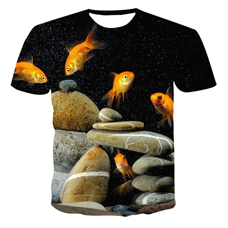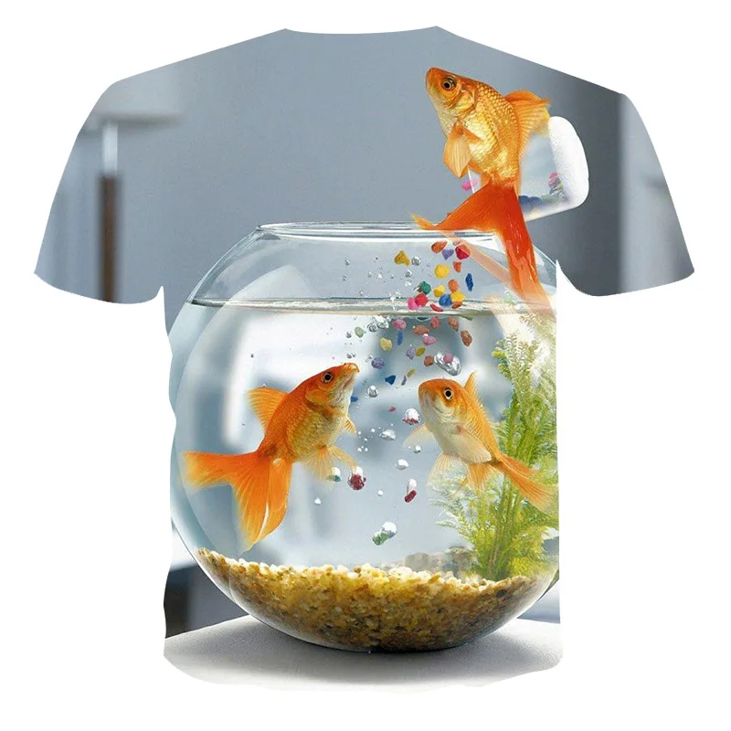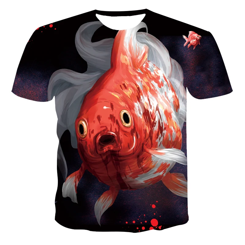 Футболка мужская с 3D-принтом рыбы, модная повседневная тенниска с забавным принтом в стиле Харадзюку, рубашка в стиле хип-хоп, лето