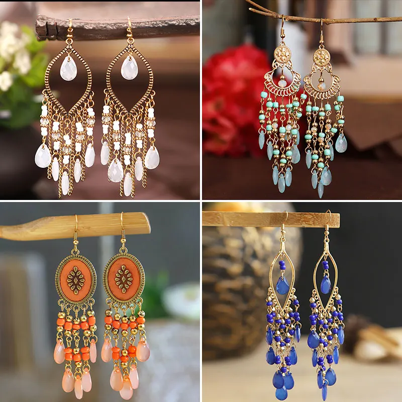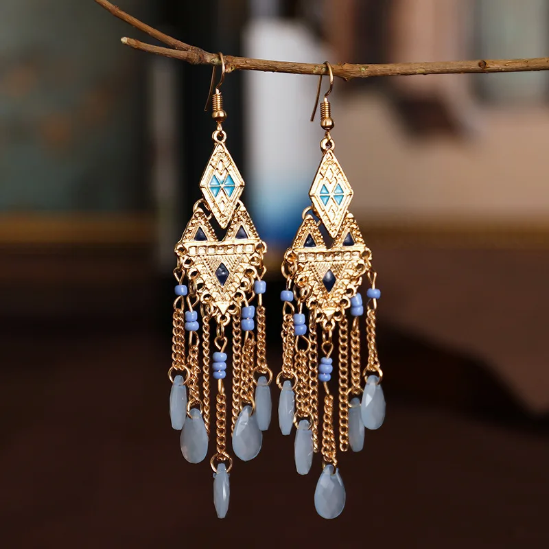 Женские богемные серьги, позолоченные серьги-кисточки в стиле ретро...