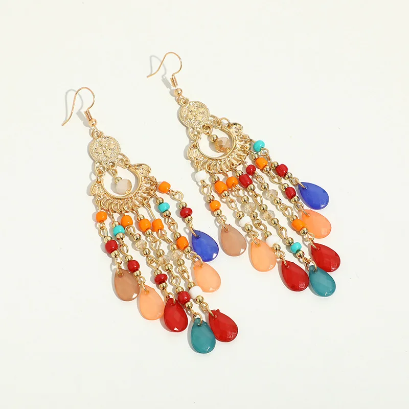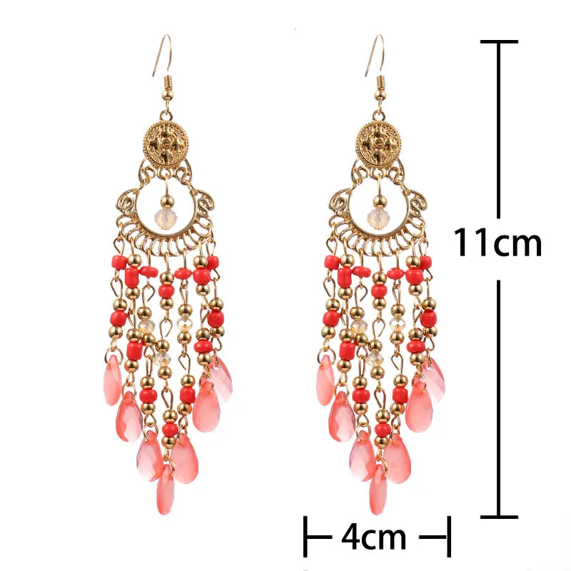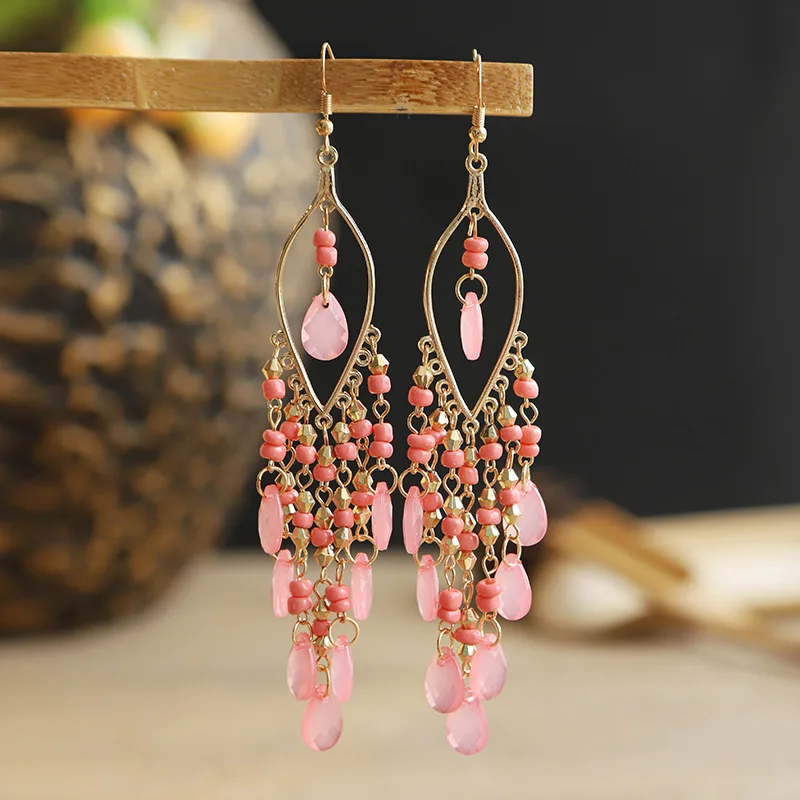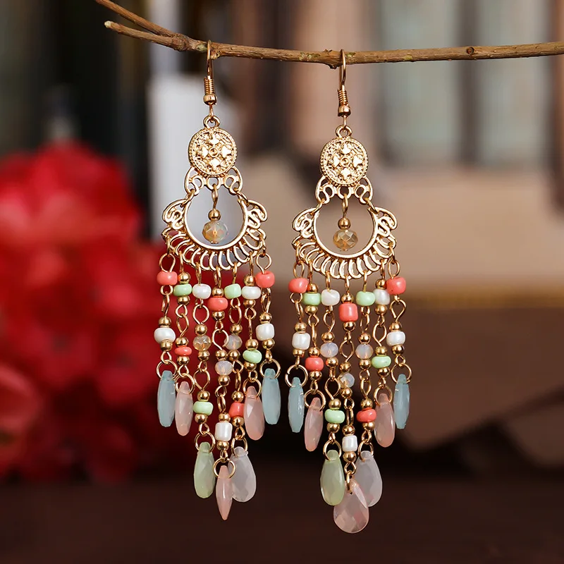 Женская мода длинные серьги в богемном стиле креативные веерообразные украшения Кристалл бисер кисточка свадебные серьги сережки в этническом стиле