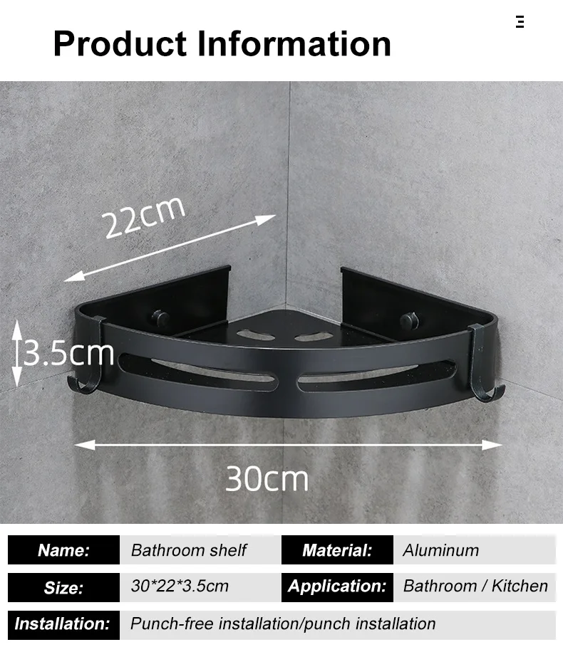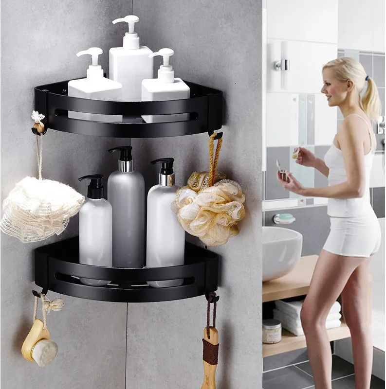 Треугольная стойка для хранения полотенец и душа, черные угловые полки, Настенный алюминиевый держатель для шампуня, полка-органайзер для ванной комнаты без сверления