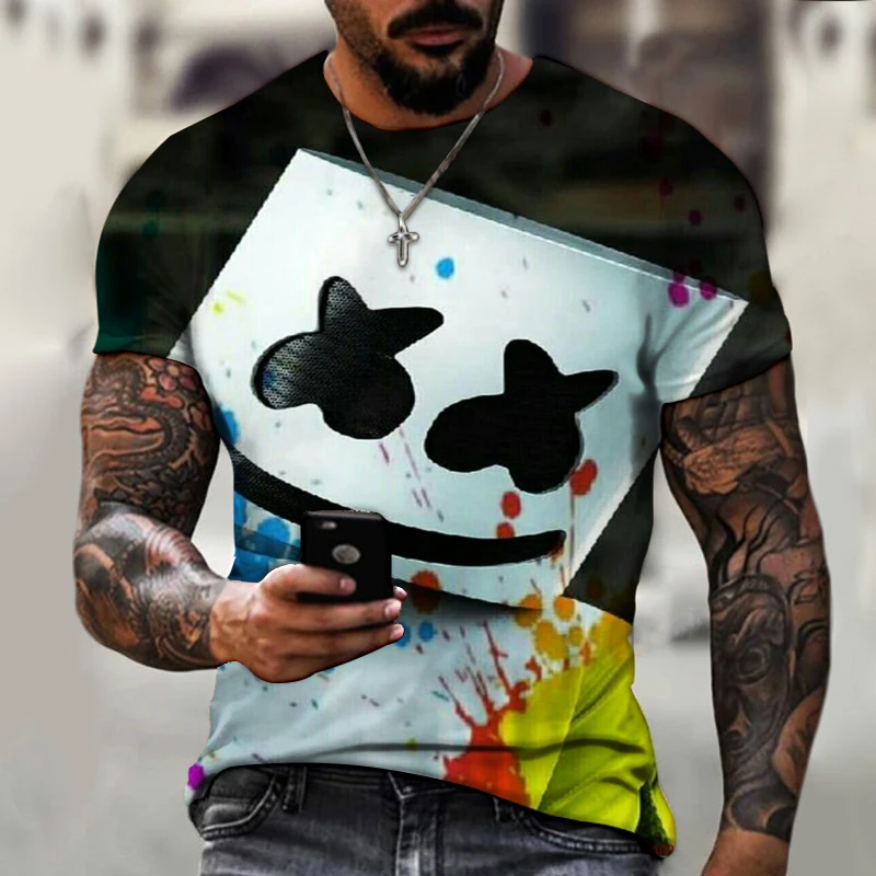 Новинка, большие размеры, мужские крутые Топы 3D со смайликом, с ко...