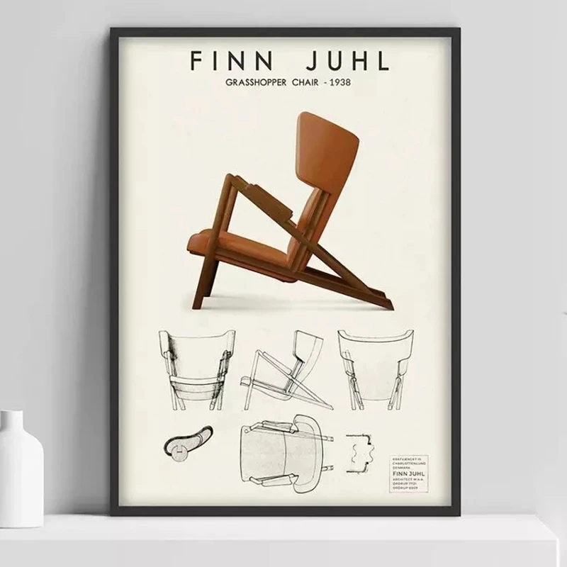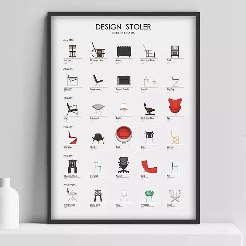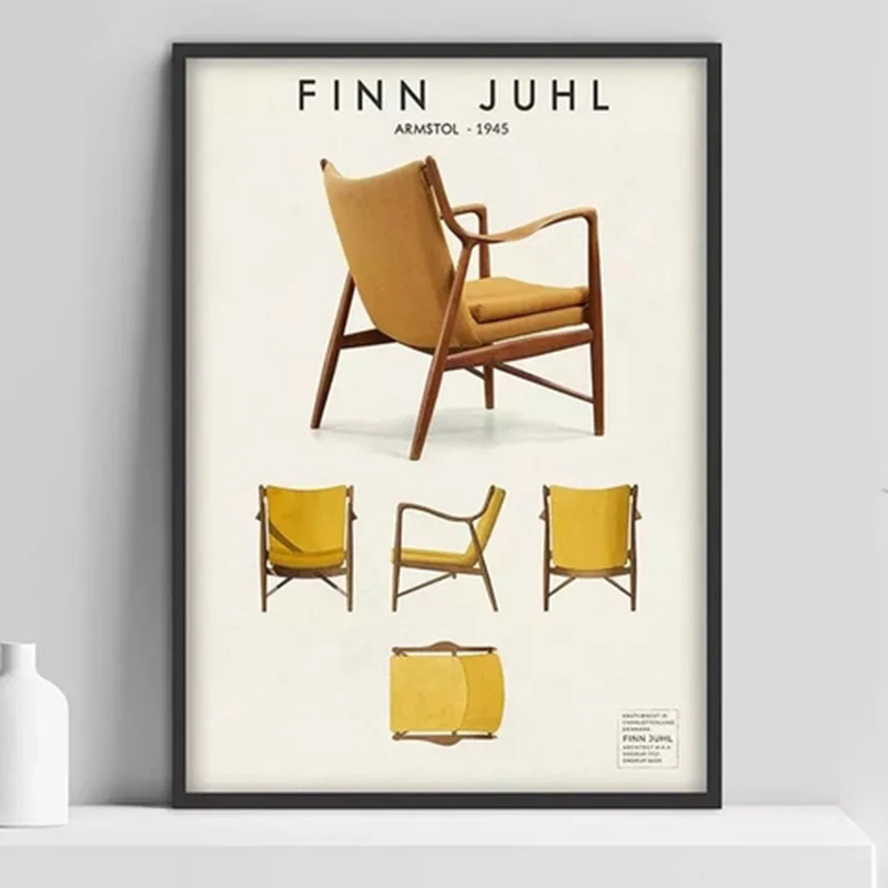 Постеры скандинавские с мультяшными принтами в гостиную, датские дизайнерские стулья, Картина на холсте, картина для журнала, декор интерьера офиса