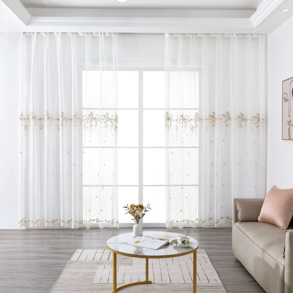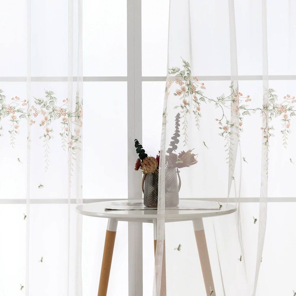 Прозрачные шторы XTMYI с цветочным рисунком для гостиной, тюлевые шторы для окна, прозрачные шторы из органзы с листьями, занавески для дома