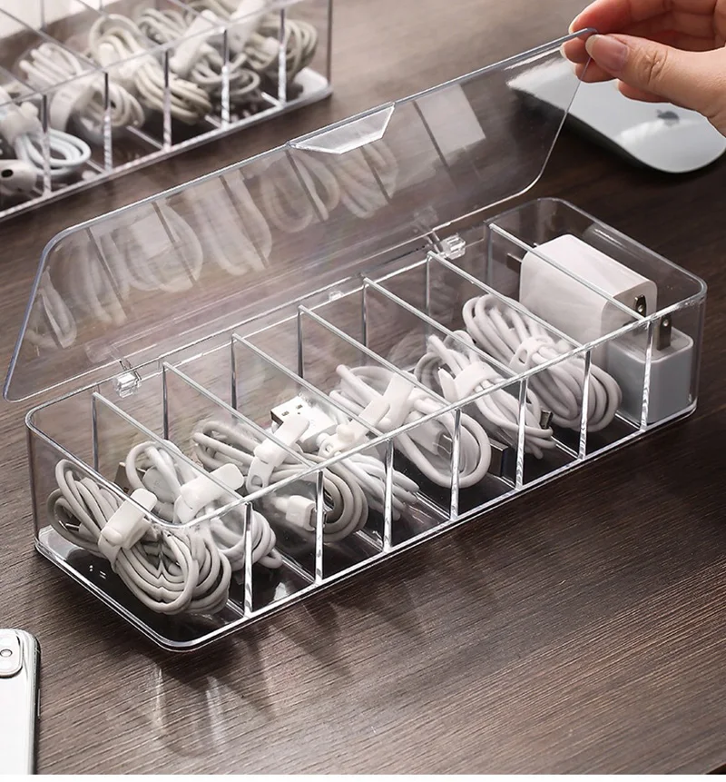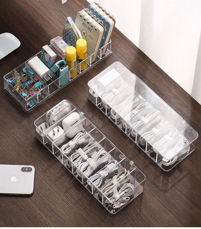 Прозрачная коробка для хранения кабеля, контейнер для хранения данных, настольный органайзер для офиса, органайзер для косметики, ювелирных украшений, акриловый Органайзер для кабеля