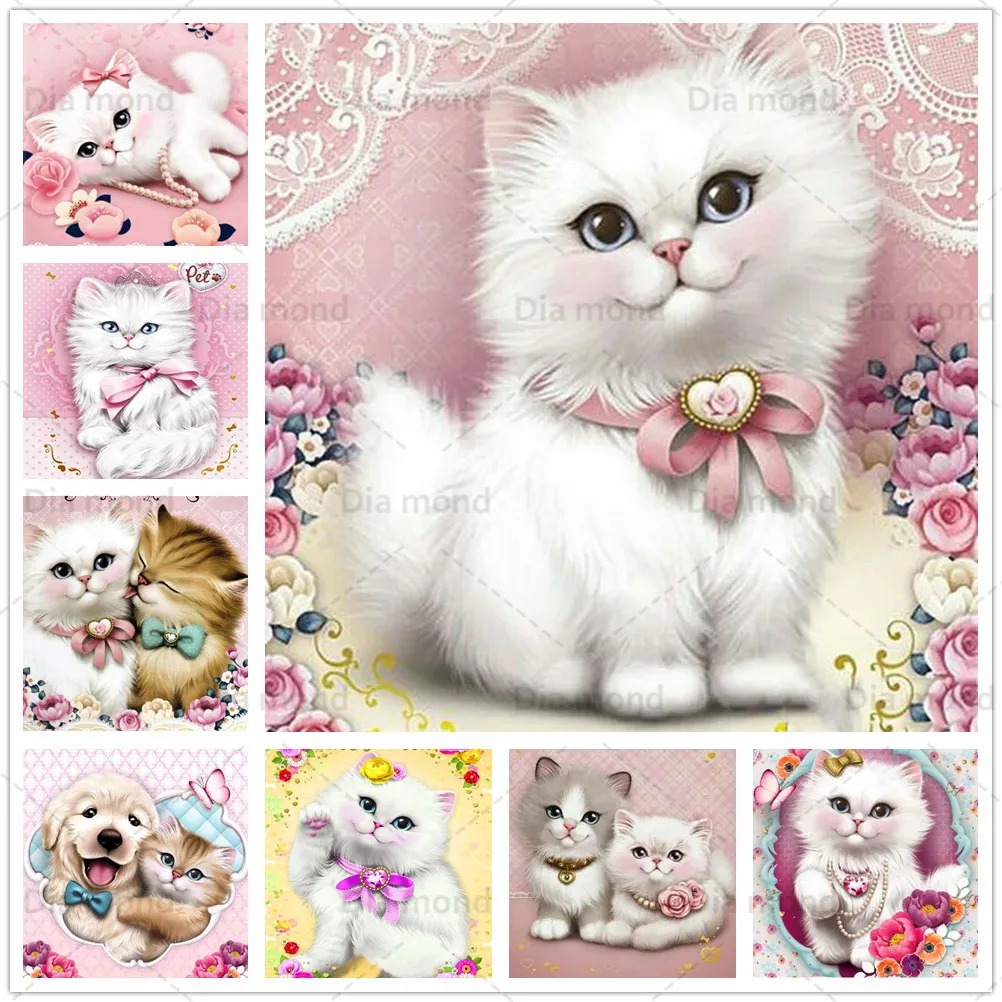 Набор для алмазной вышивки 5D сделай сам, мозаика из круглых страз с мультяшным рисунком кошки, квадратной формы, для творчества, украшение на стену