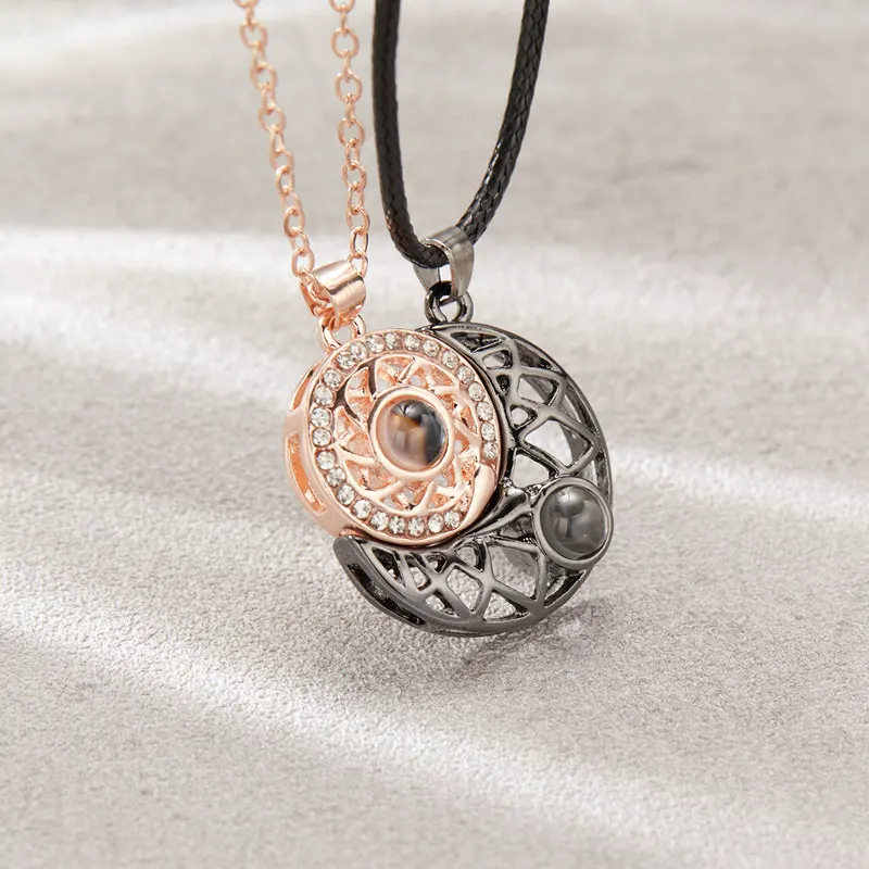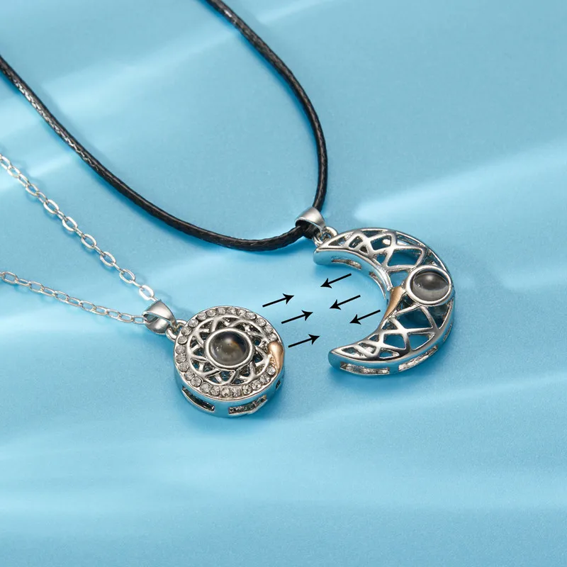 Ожерелье женское с магнитной проекцией, ювелирное изделие с подвеской в виде солнца, Луны, сердца, драгоценностей, 2 шт.компл.