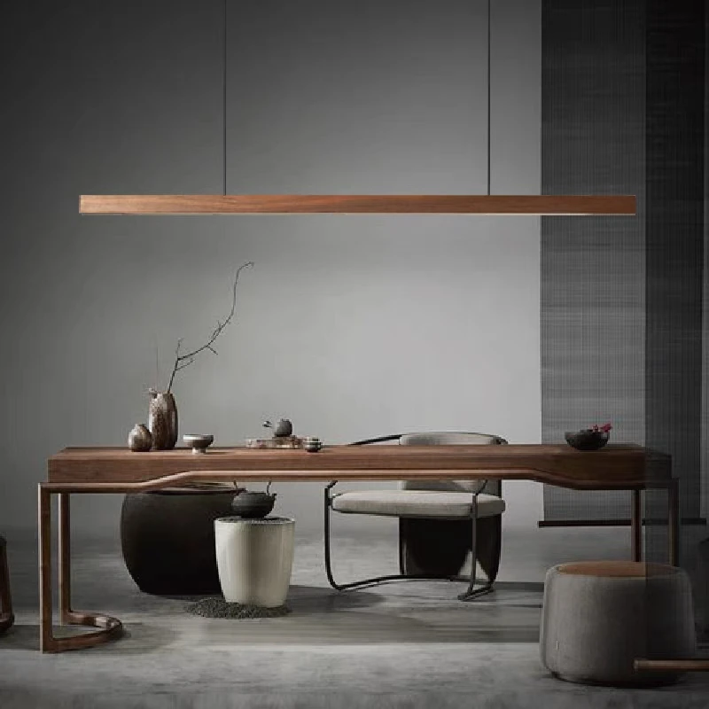 Скандинавская деревянная светодиодная Подвесная лампа, простой подвесной светильник для столовой, гостиной, кухни, офиса, магазина, бара, кафе, длинная полосатая Подвесная лампа