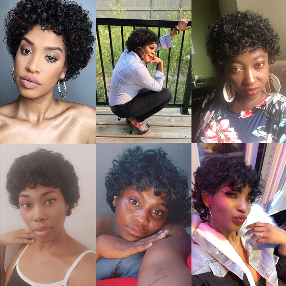 Парик для вырезания кудри 99J, натуральные волосы, короткие кудрявые, завитые, дешевые кудрявые, не кружевные, полностью машинная работа