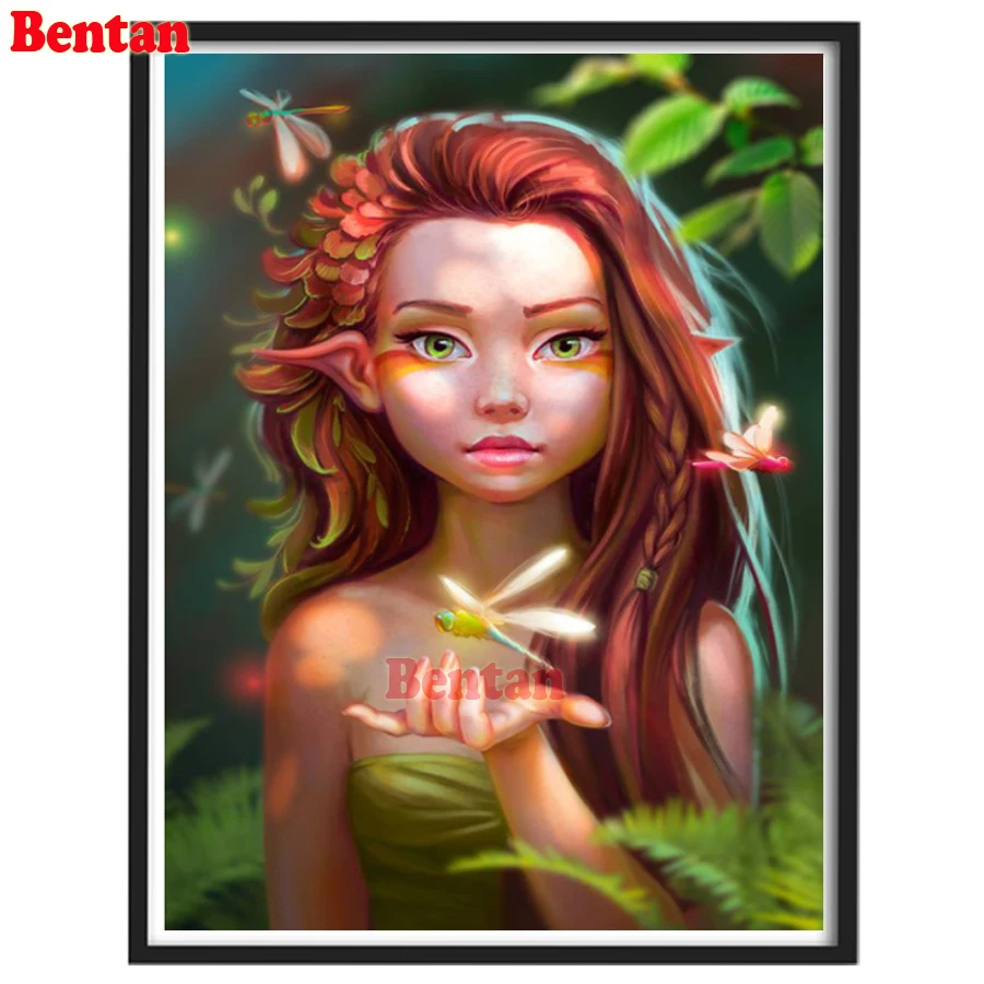 Алмазная 5D картина сделай сам, полноразмерная Мозаика из круглых страз с рисунком эльфа, стрекозы, украшение для Стразы