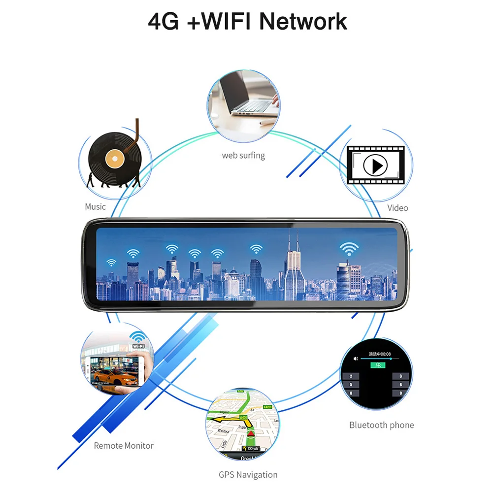 Зеркало-видеорегистратор T88, 4 канала, 12 дюймов, 4G, Android 9,0,...