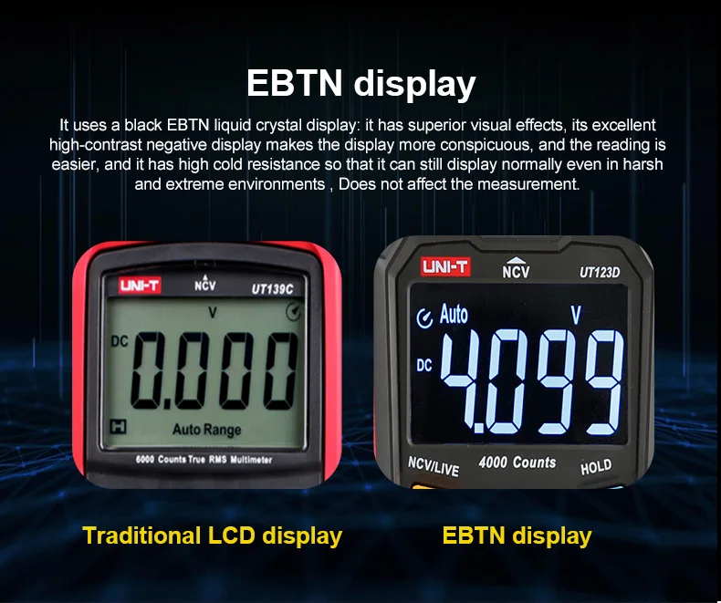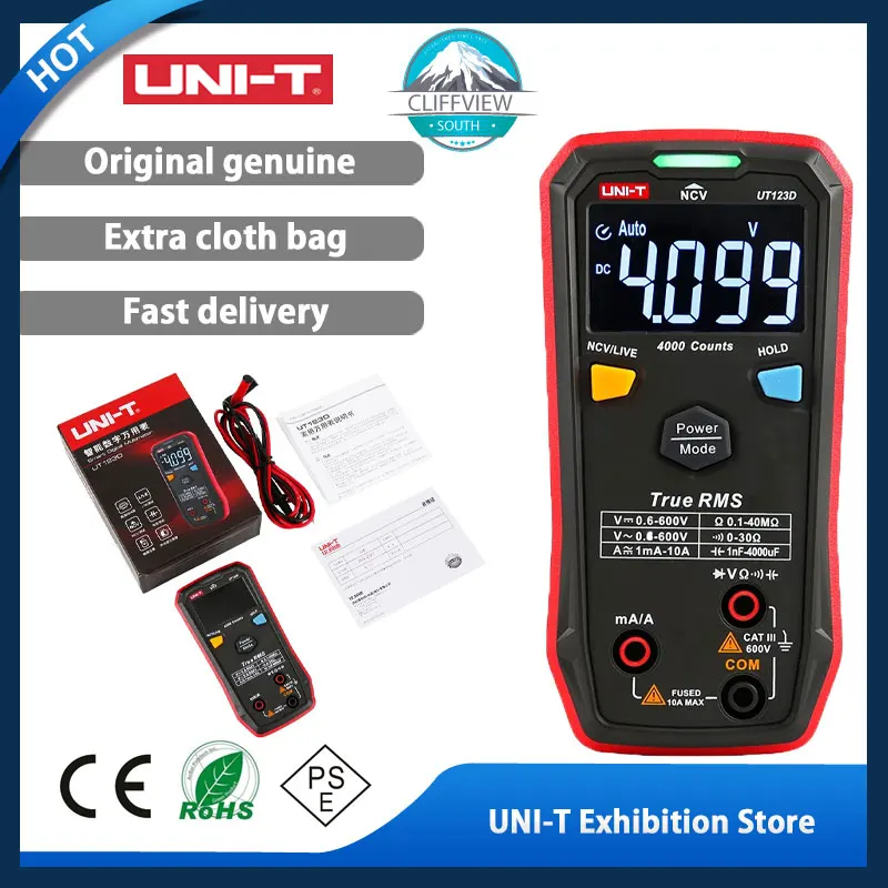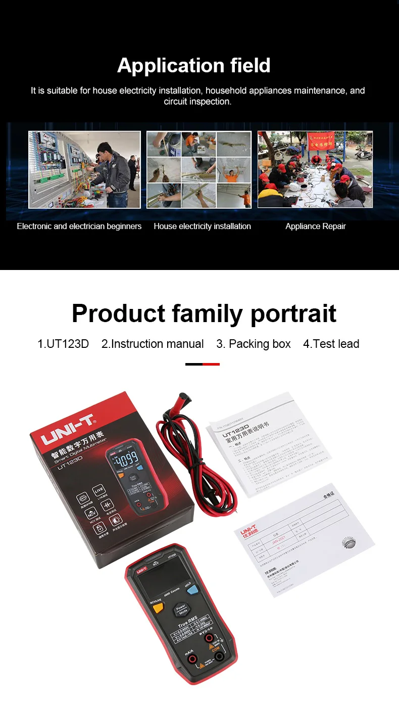Умный мультиметр UNI-T Digital UT123D, измеритель емкости и напряжения, постоянного и переменного тока, с дисплеем EBTN