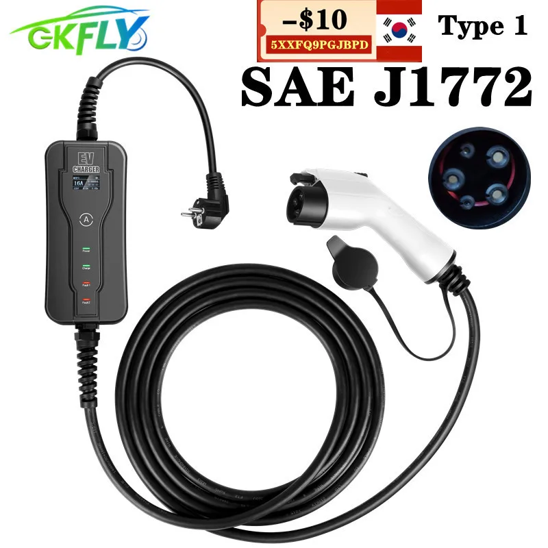 GKFLY 220 В Тип 1 портативное зарядное устройство для электромобилей SAE J1772 Уровень 2 8A 10A 13A 16A Автомобильные зарядные станции умное электрическое автомобильное зарядное устройство переменного тока