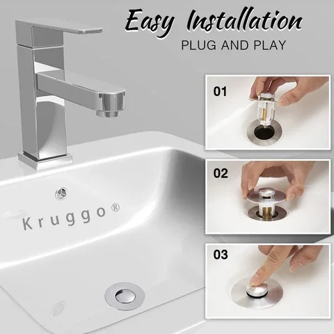 Kruggo®Всплывающая пробка для раковины ванной комнаты спроектирована с внутренним хорошо организованным сетчатым ситом, который аккуратноСобирает волосы, ювелирные изделия, грязь и что угодно,Предотвращает засорение слива.