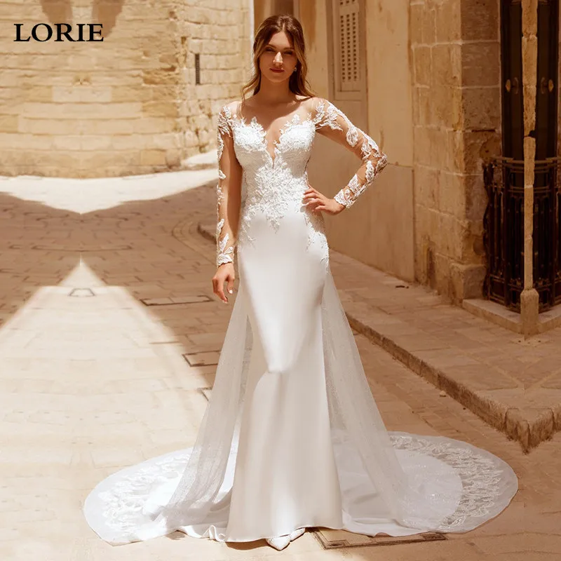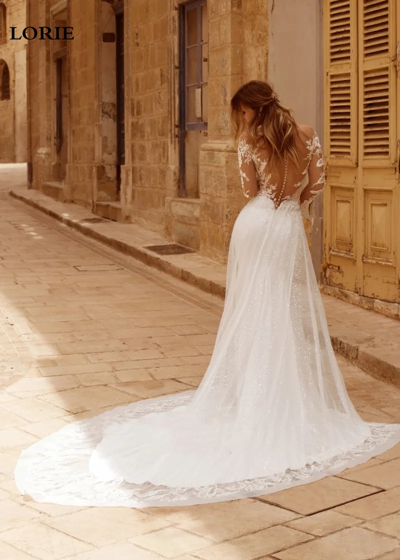 LORIE кружевные свадебные платья-русалки в стиле бохо, женские кружевные свадебные платья со съемным шлейфом, длинное свадебное платье