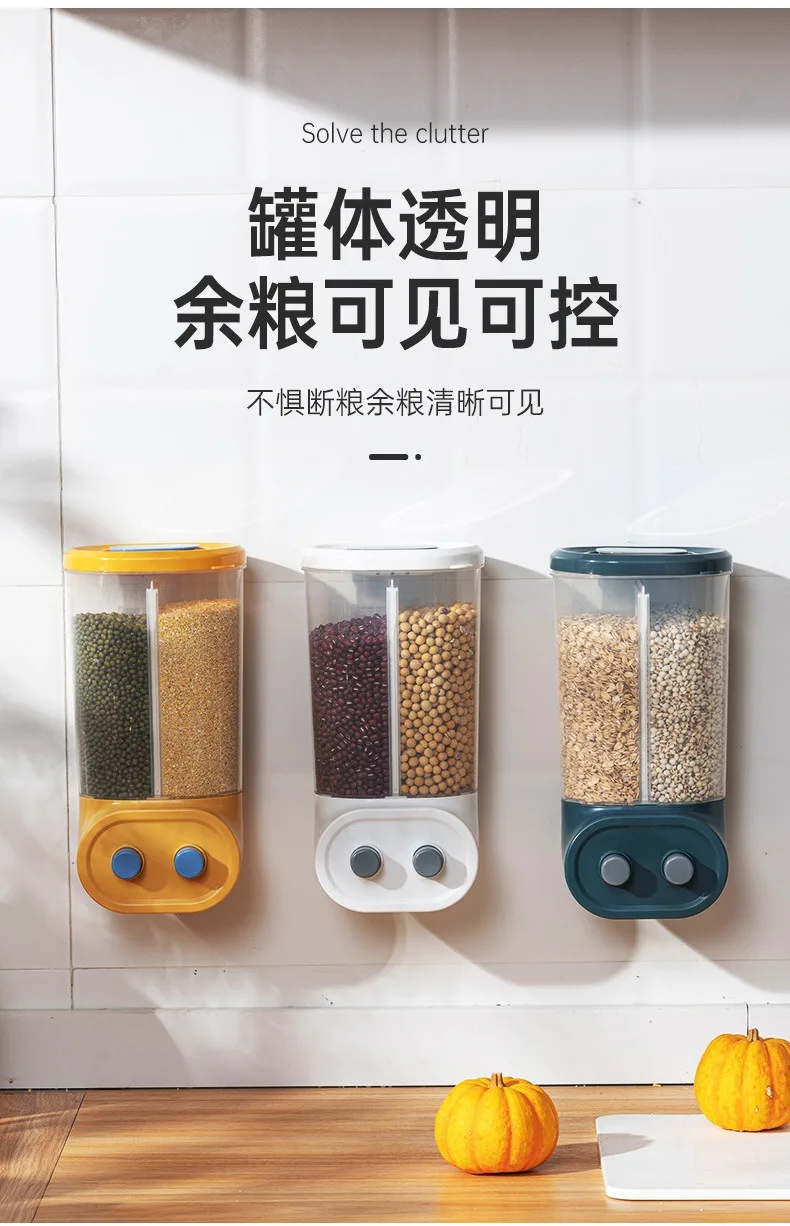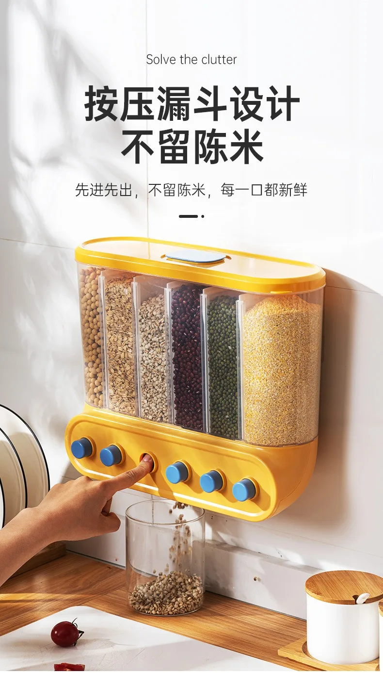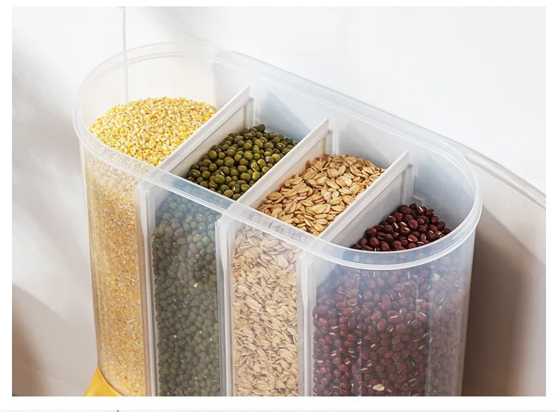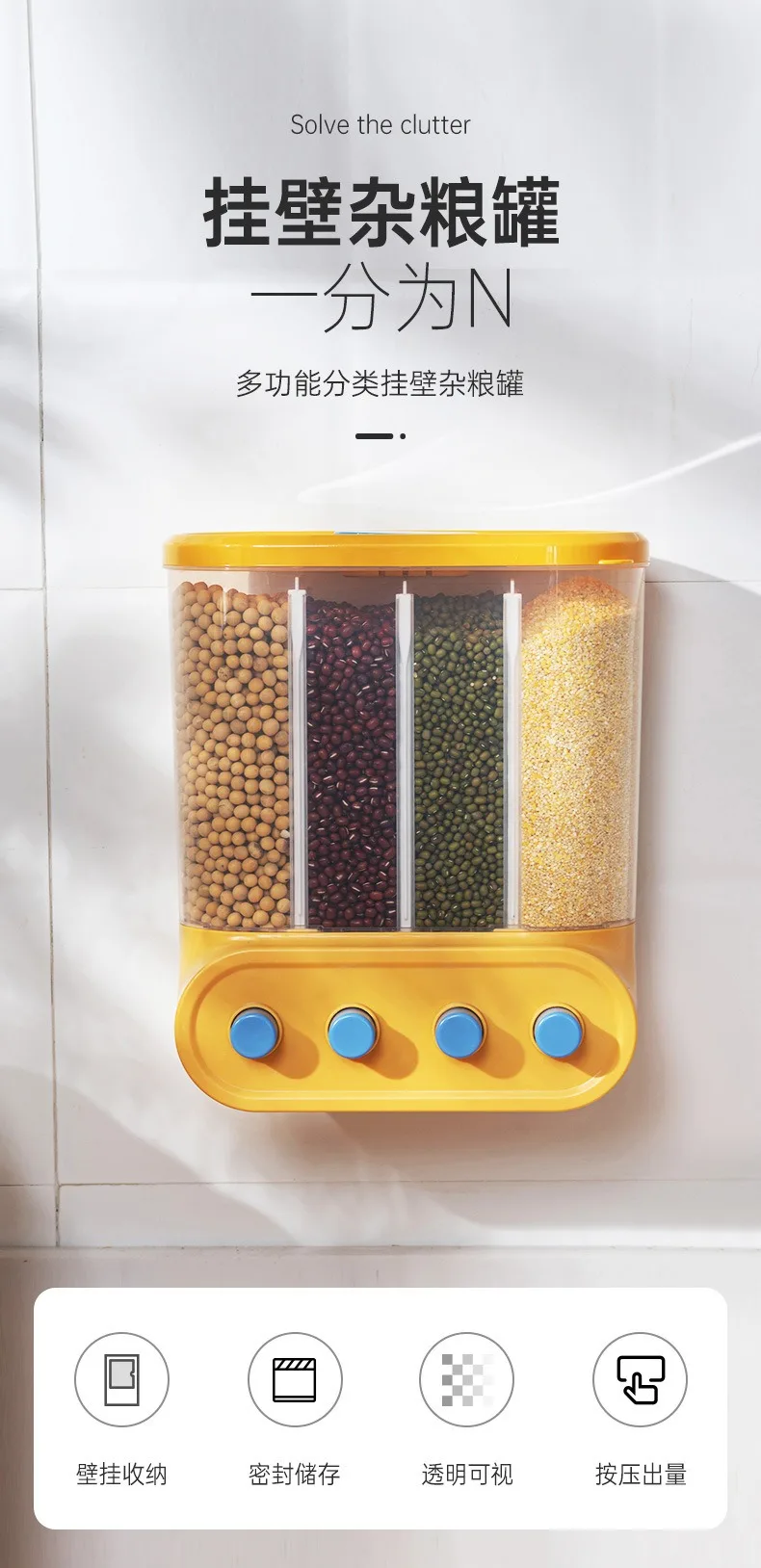 Настенный диспенсер для зерен, кухонные контейнеры для хранения пищевых продуктов, диспенсер для зерен риса, прозрачные отдельные Герметичные банки для хранения