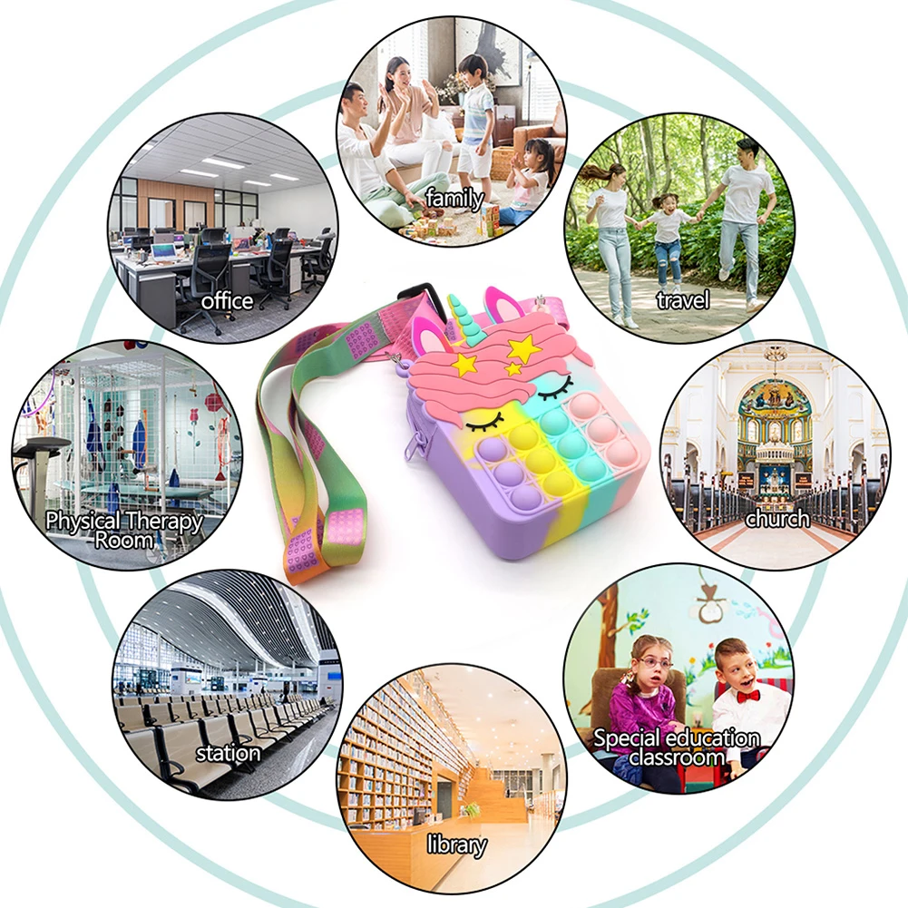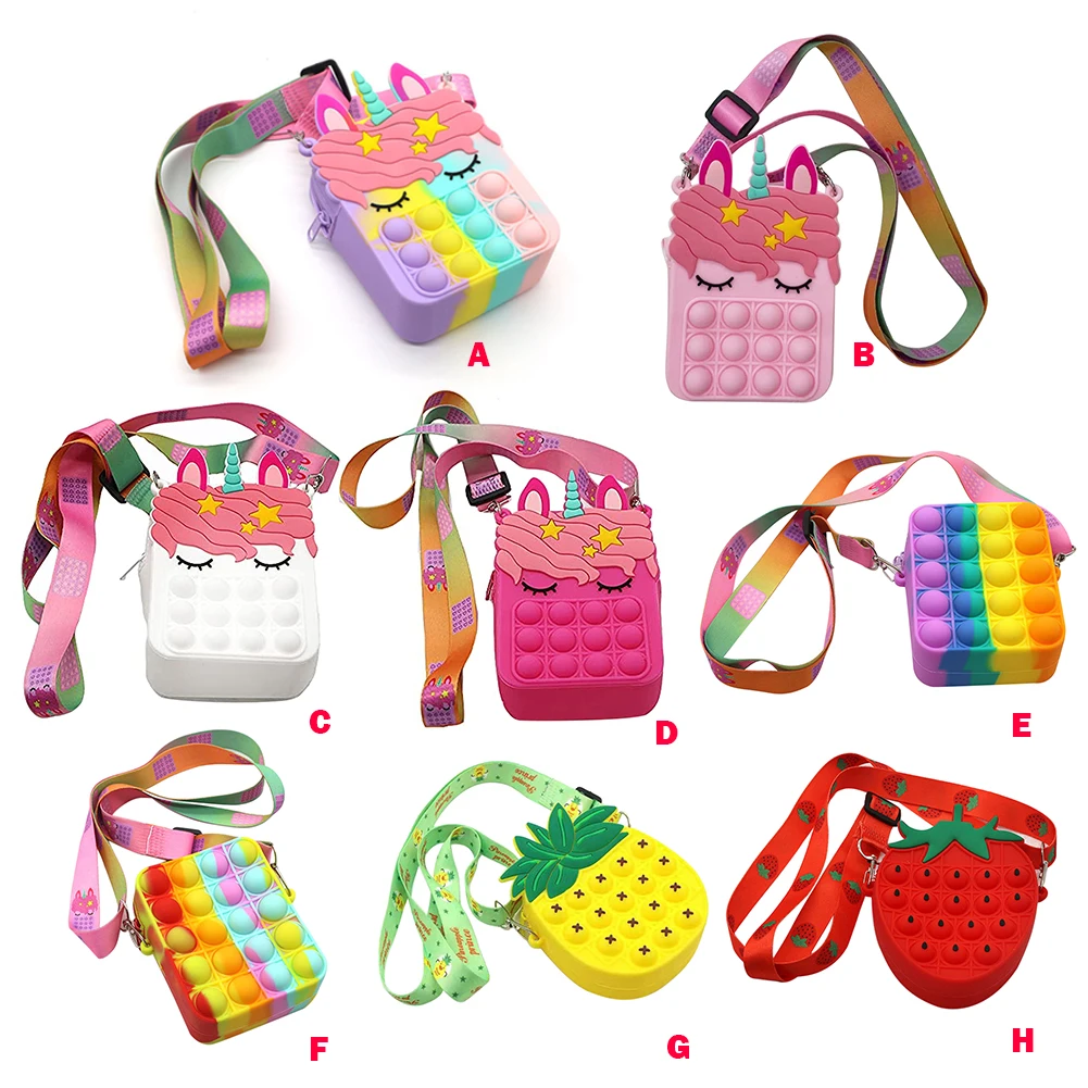 Силиконовая сумка-мессенджер с пузырьками для детского сада, сенсорная игрушка для аутизма, радужная сумка через плечо, кошелек для монет, подарки от непоседы