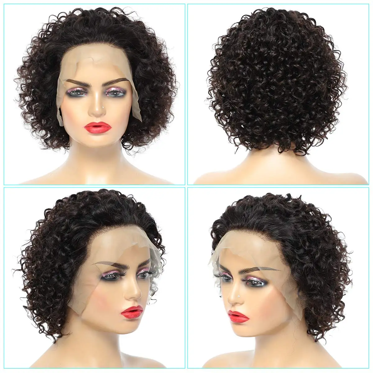 Кудрявые человеческие волосы парик короткий боб парик бразильские волосы Кружева часть человеческих волос парики для Blace женщин глубокая волна парик Реми волосы