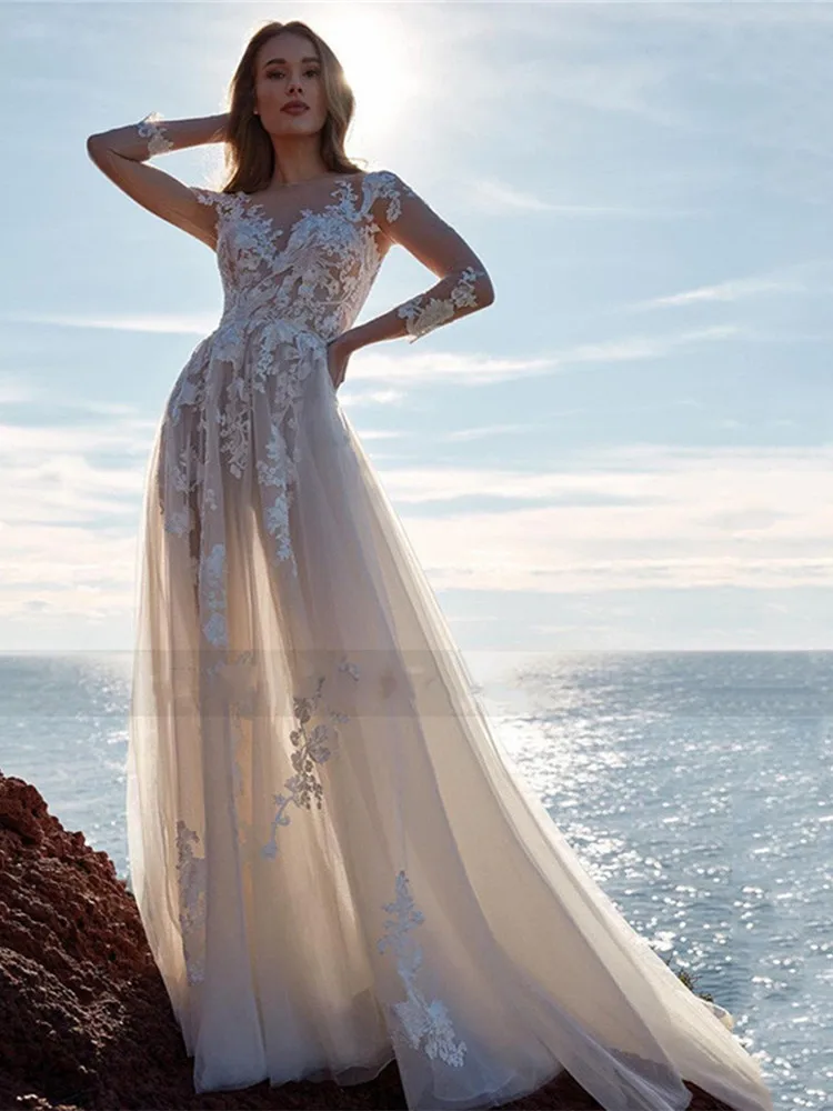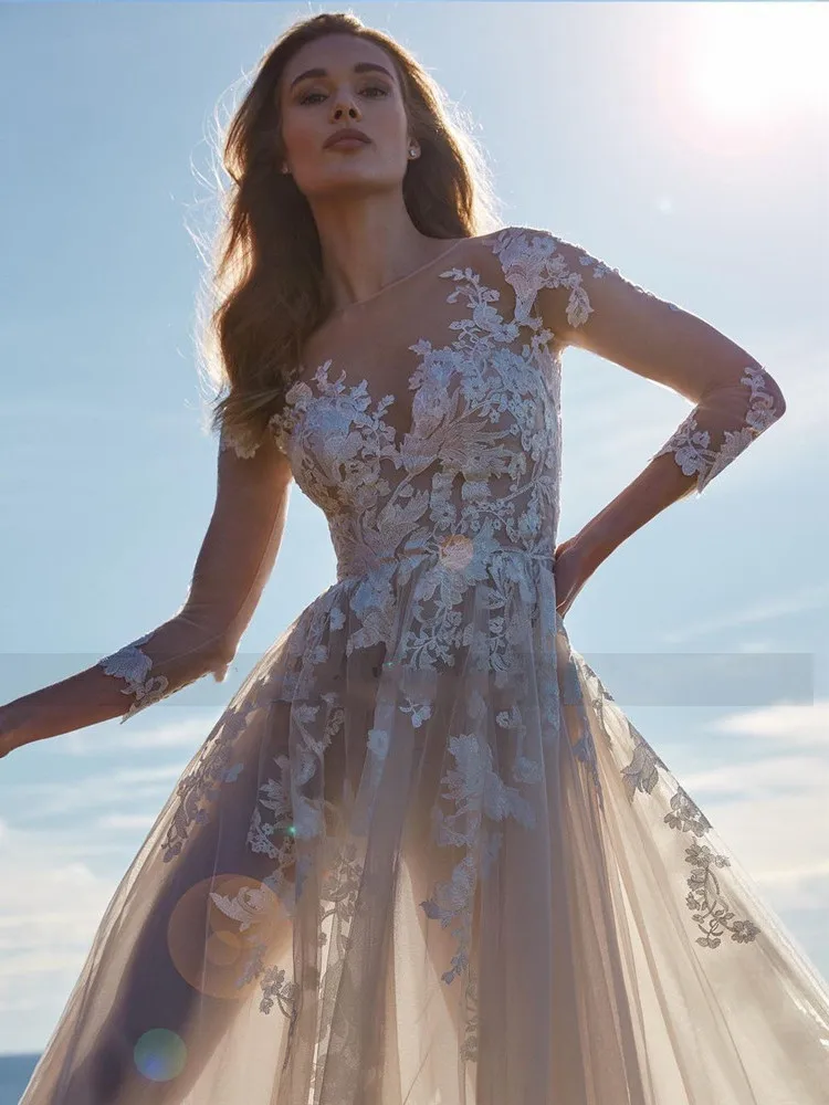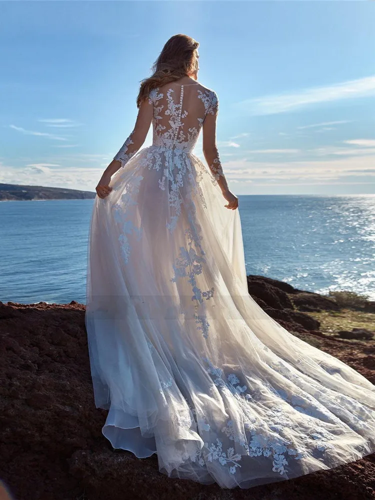 Платье Свадебное ТРАПЕЦИЕВИДНОЕ с длинными рукавами и V-образным вырезом