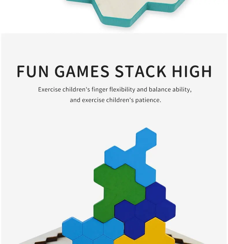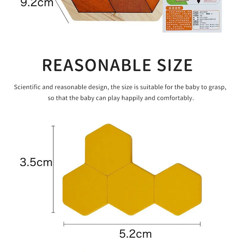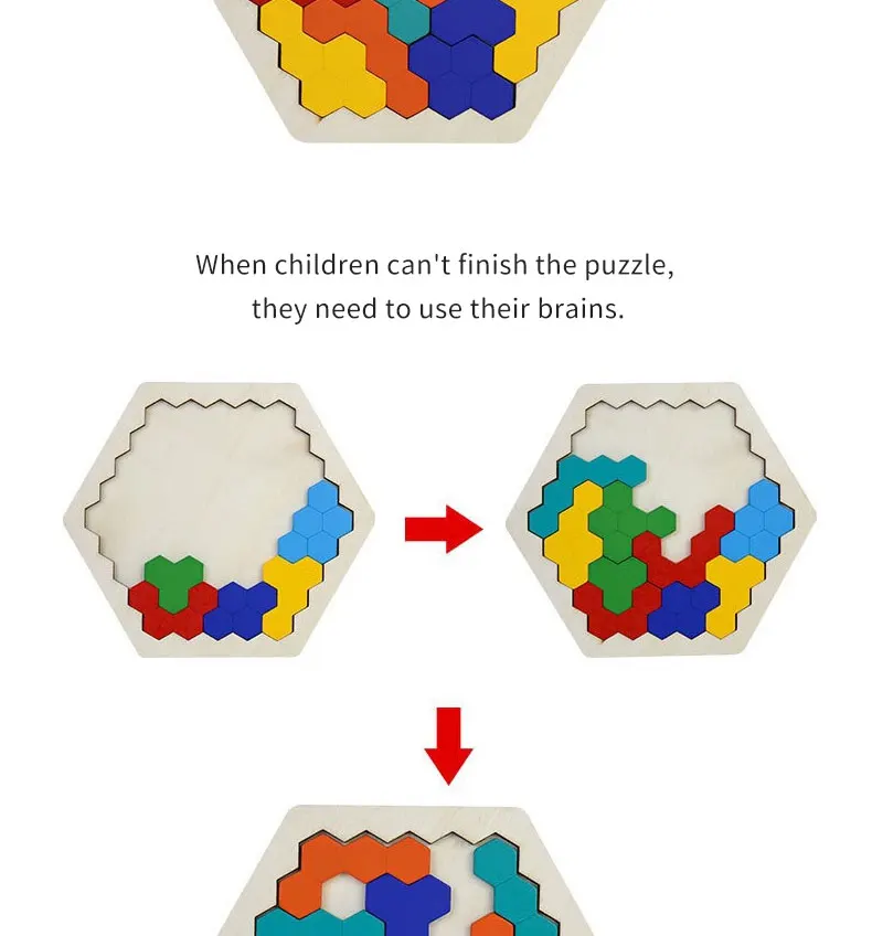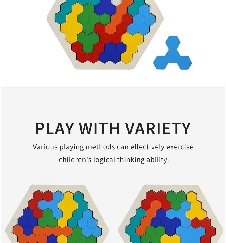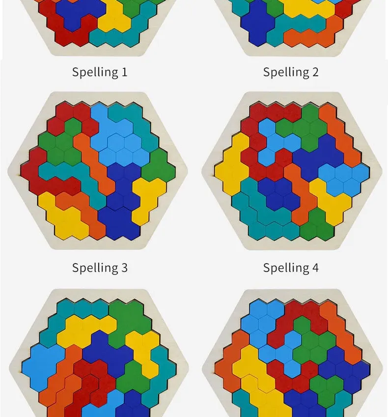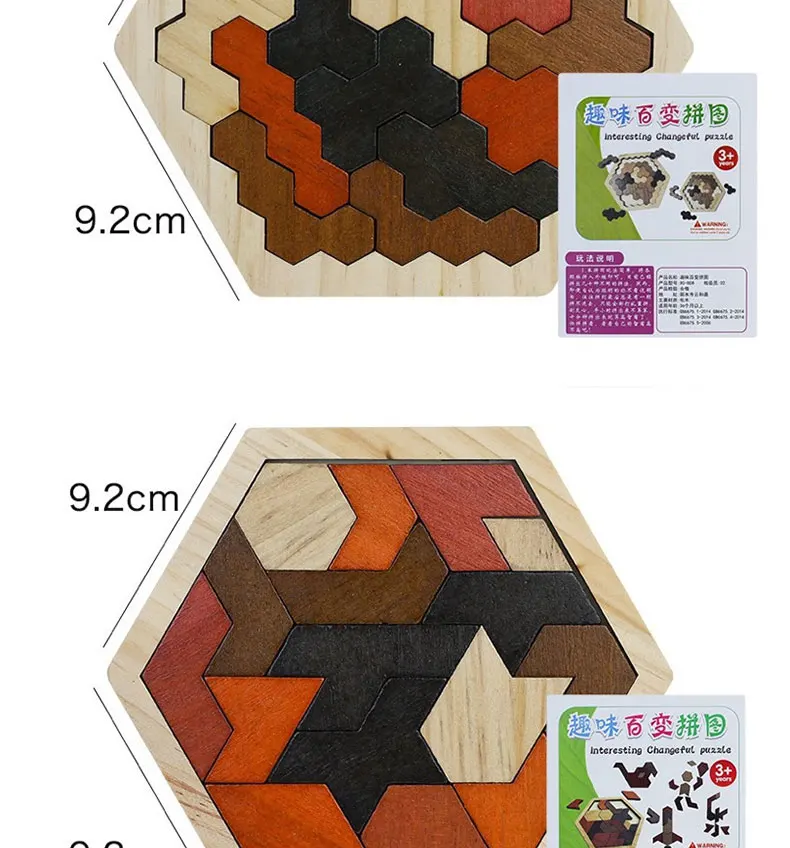 Деревянный шестиугольный пазл, форма, узор, блок, танграмма, головоломка, игрушка, геометрия, логика, IQ игра, Монтессори, образовательный Подарок для ребенка
