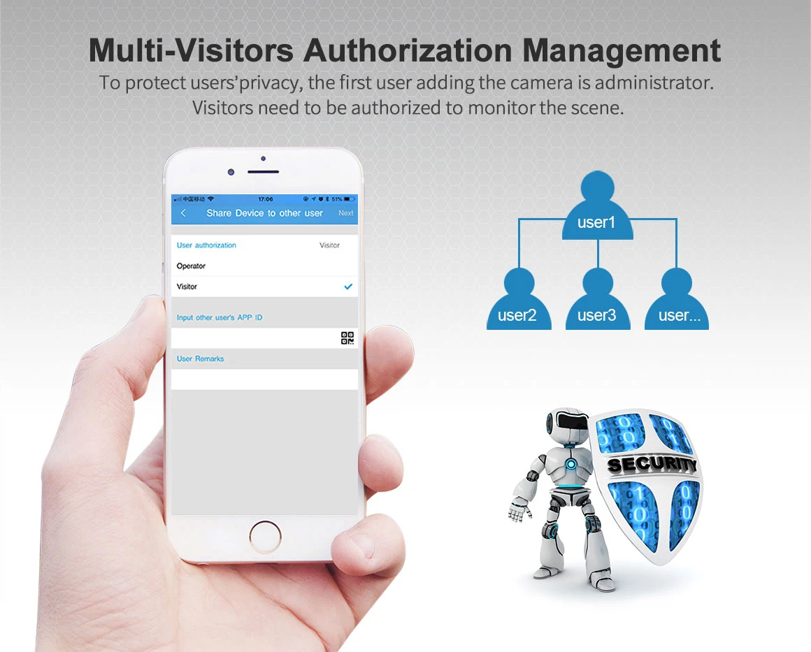 Чтобы защитить конфиденциальность пользователей, первый пользователь, добавляющий камеру, является administrator. Посетители должны быть уполномочены следить за сценой.