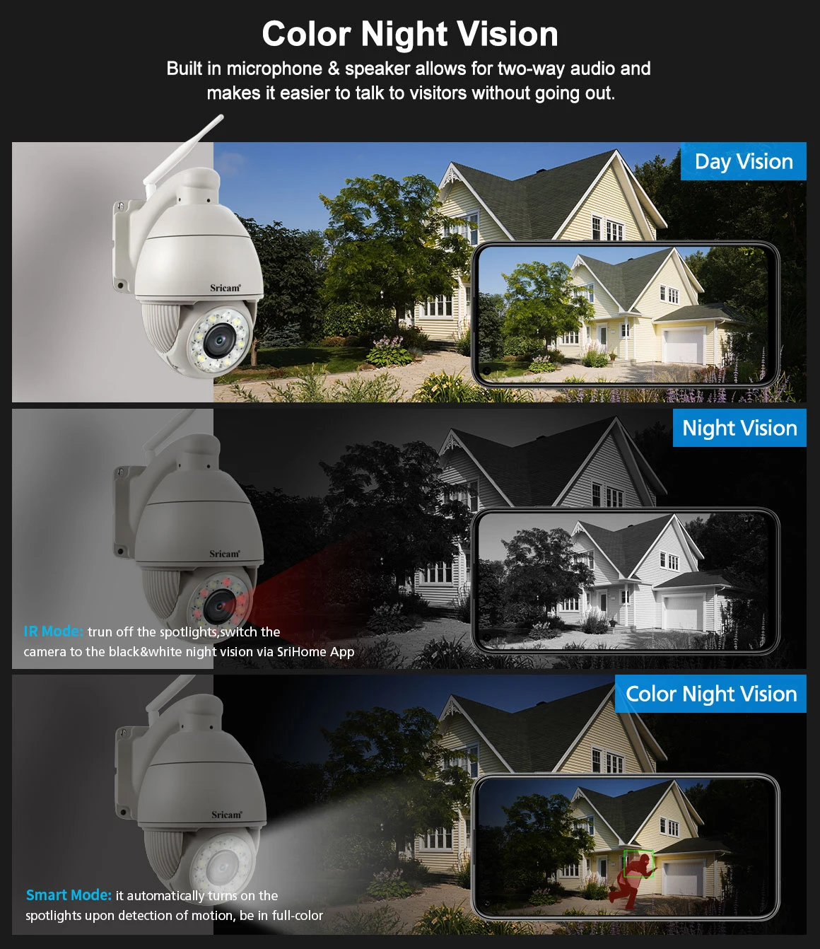 Удаленно перемещайте камеру вверх и вниз, влево и вправо из приложения SriHome, даже если вы находитесь на другой стороне мира.