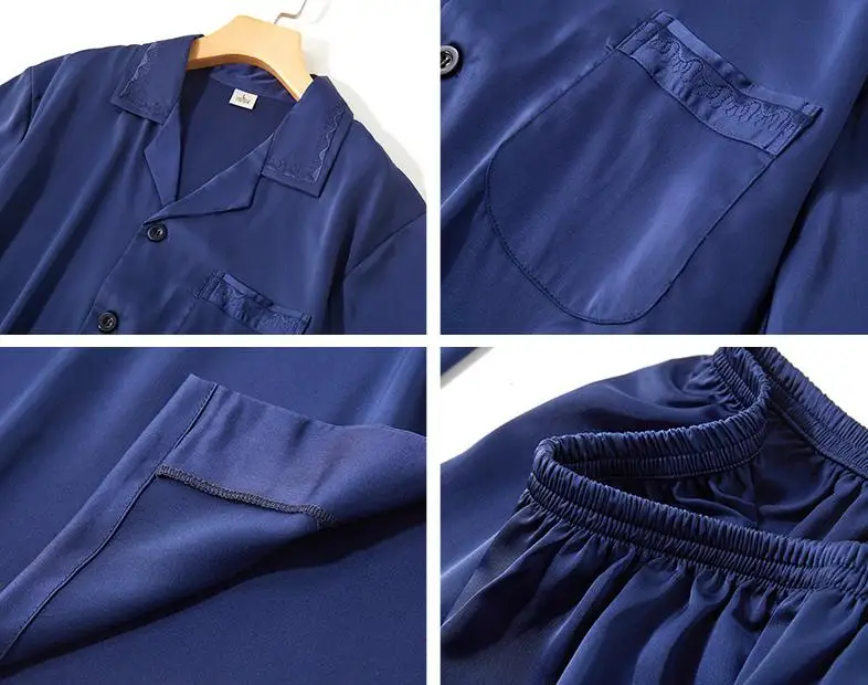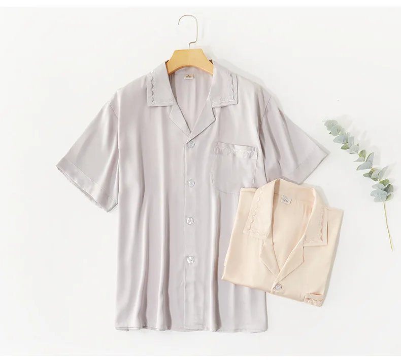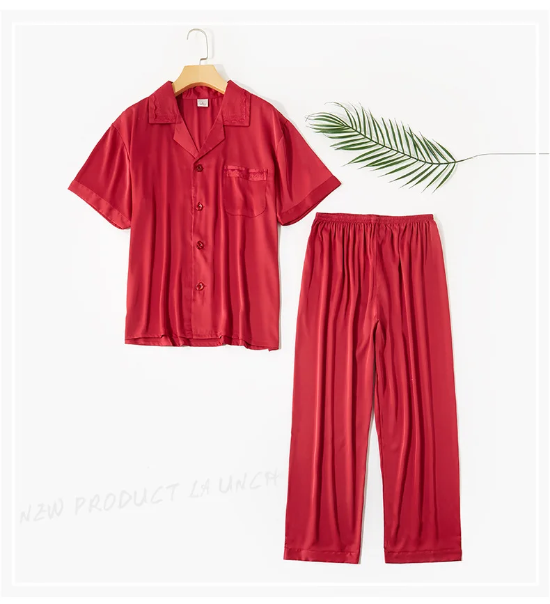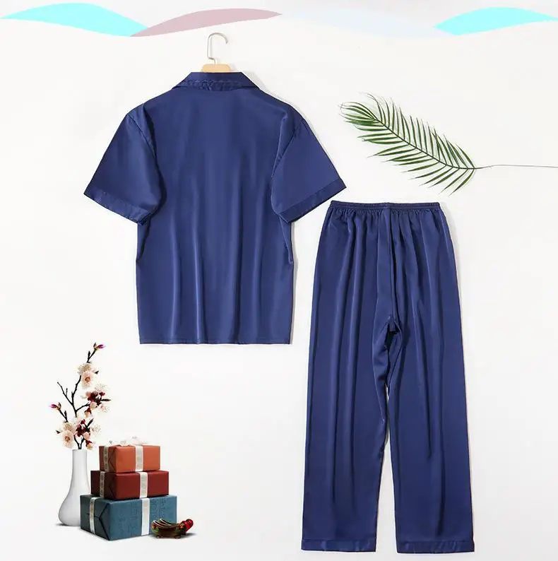 Мужской модный шифоновый кардиган, пижамные костюмы, 2 шт., однотонная одежда для сна на пуговицах, Повседневная Свободная ночная рубашка, Мужская пижама с коротким рукавом, домашняя одежда