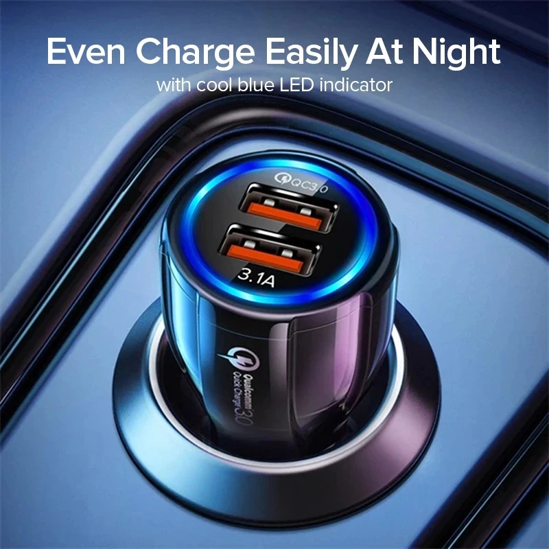 Автомобильное зарядное устройство с двумя USB-портами, 3,1 А, светодиодный дисплей, адаптер для быстрой зарядки QC3.0 для iPhone 13, 12, 11 Pro Max, Xs, X, Xr, 8, 7 SE, Samsung Galaxy Note