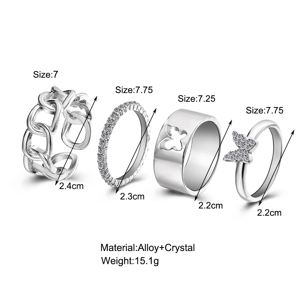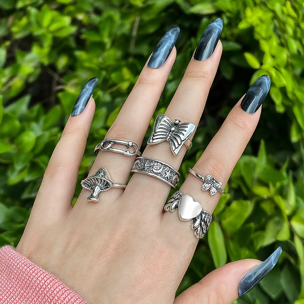 Набор колец в стиле хип-хоп с цветами, бабочкой, для женщин и мужчи...