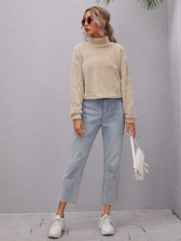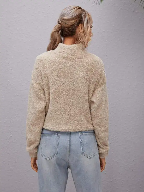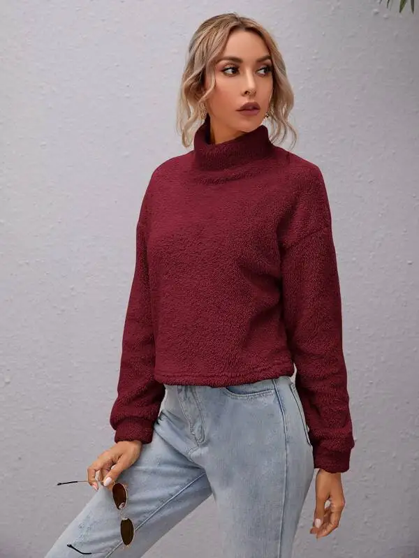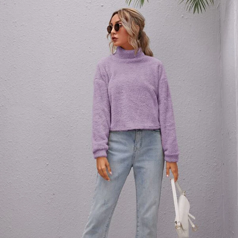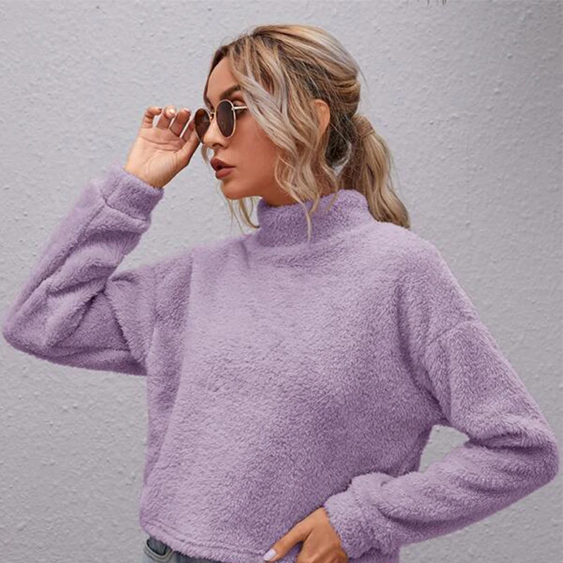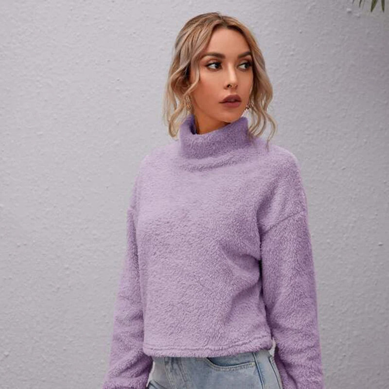 Свитшот женский с высоким воротником и спущенными плечами, на осеньзиму
