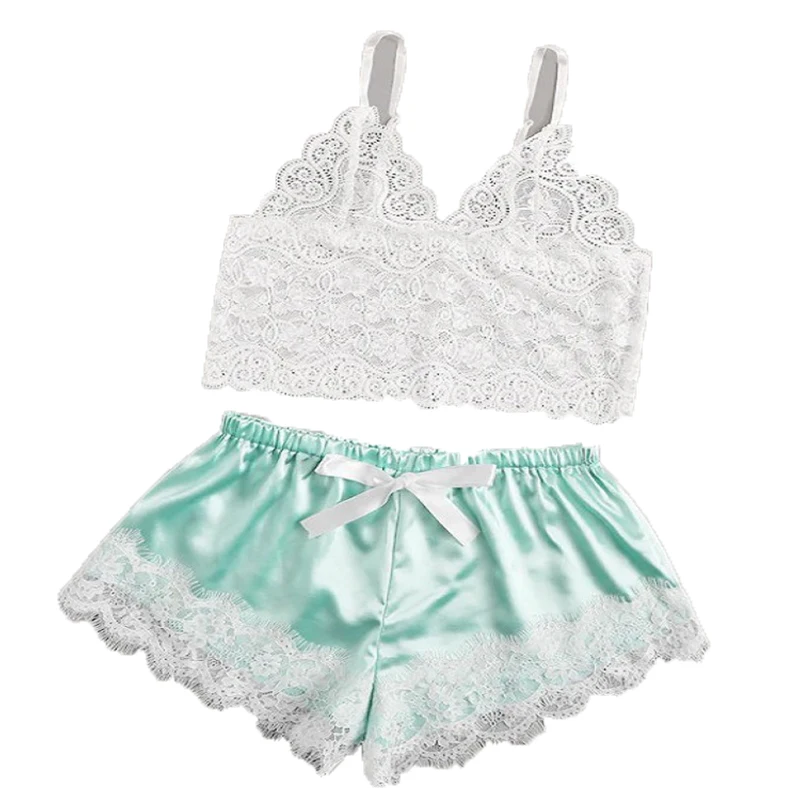 Пижама женская кружевная на бретельках, пикантный комплект одежды для сна, модная Домашняя одежда с V-образным вырезом, милая майка без рукавов, топ и шорты