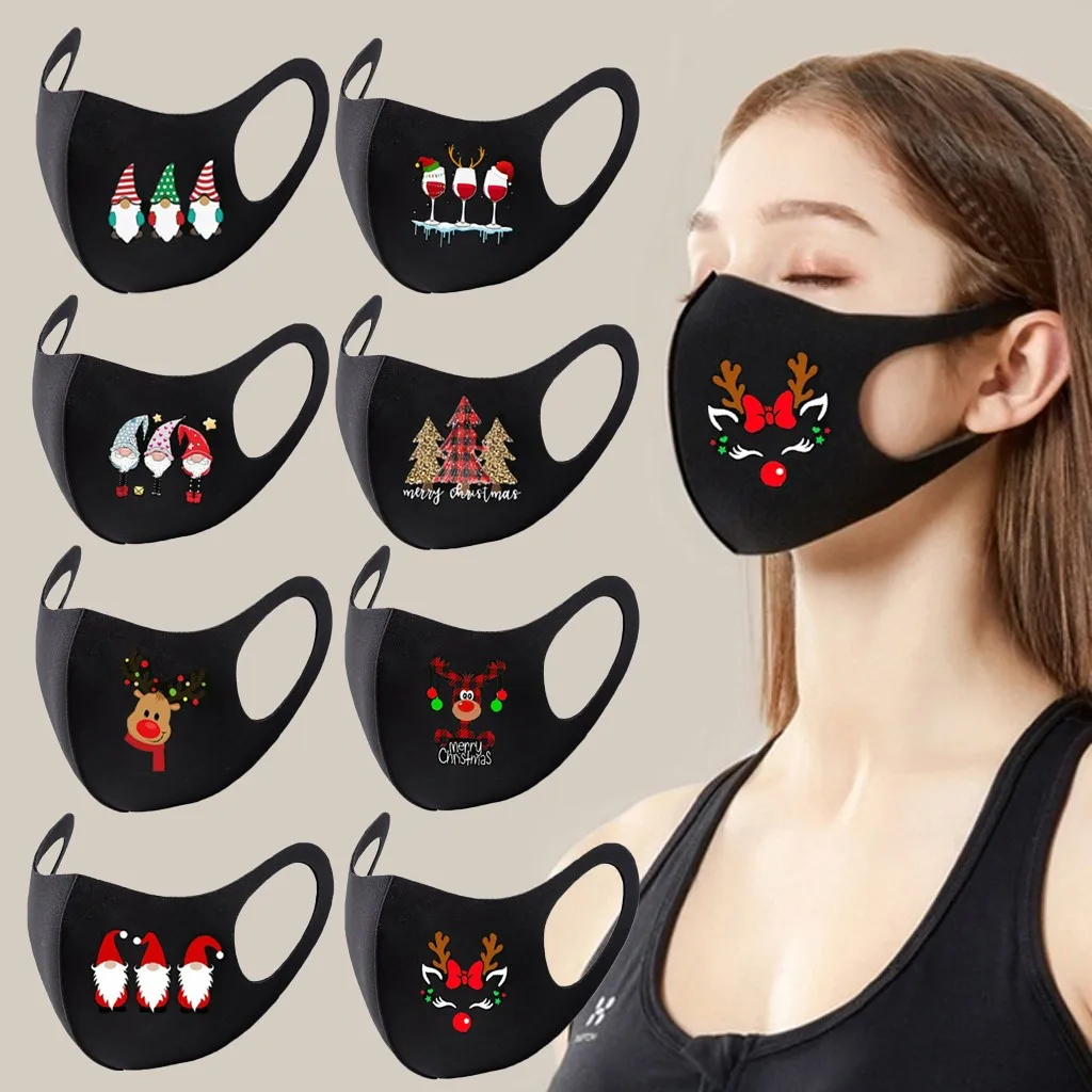 8 шт., многоразовые разноцветные маски для лица с принтом Санта-Клауса