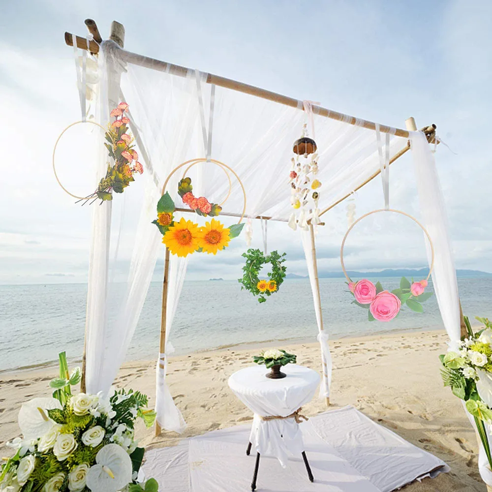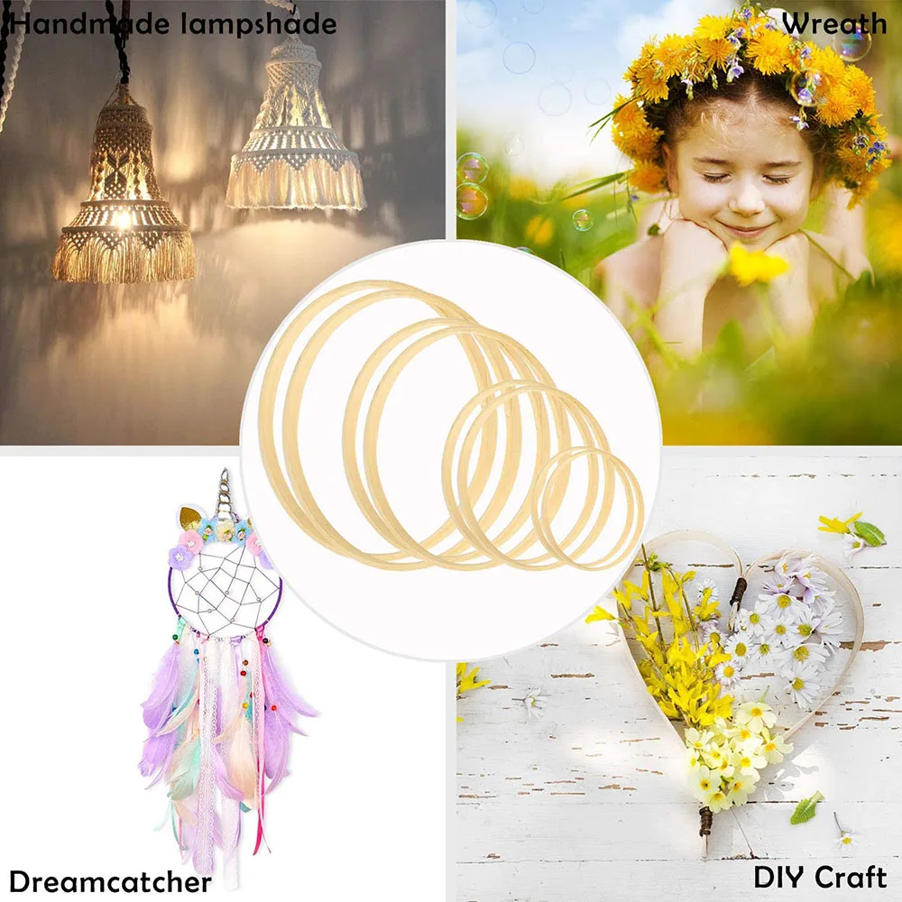Обруч из бамбука, с цветами, для рукоделия, макраме, 2 шт.