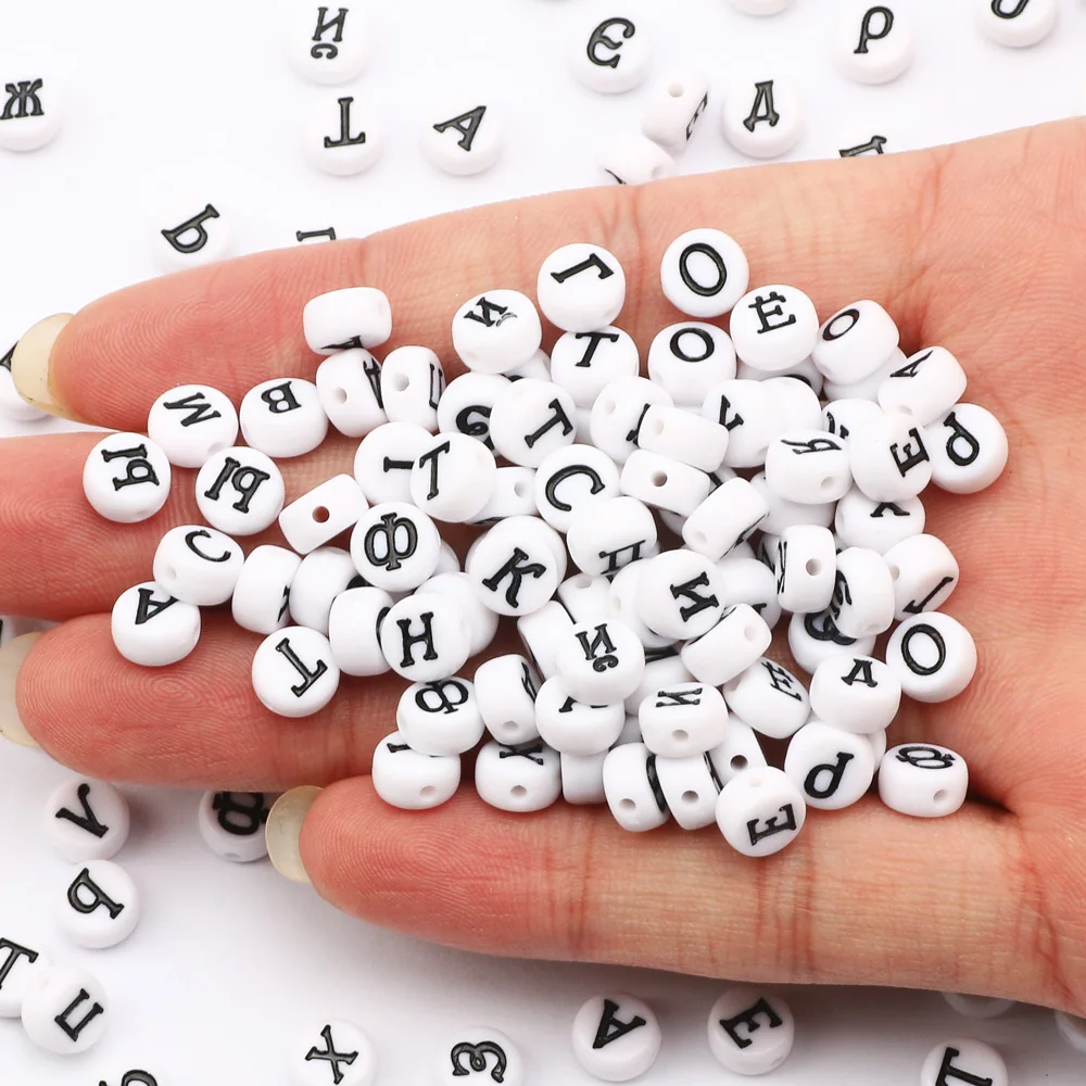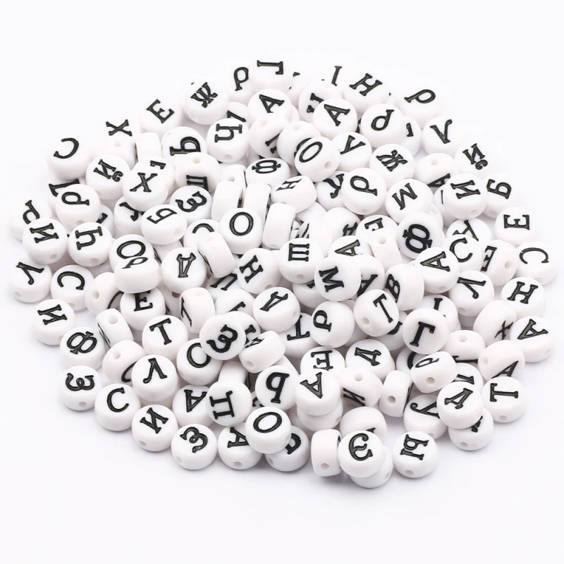 Бусины акриловые, 4 х 7 мм, с русскими буквами, для самостоятельного изготовления ювелирных изделий