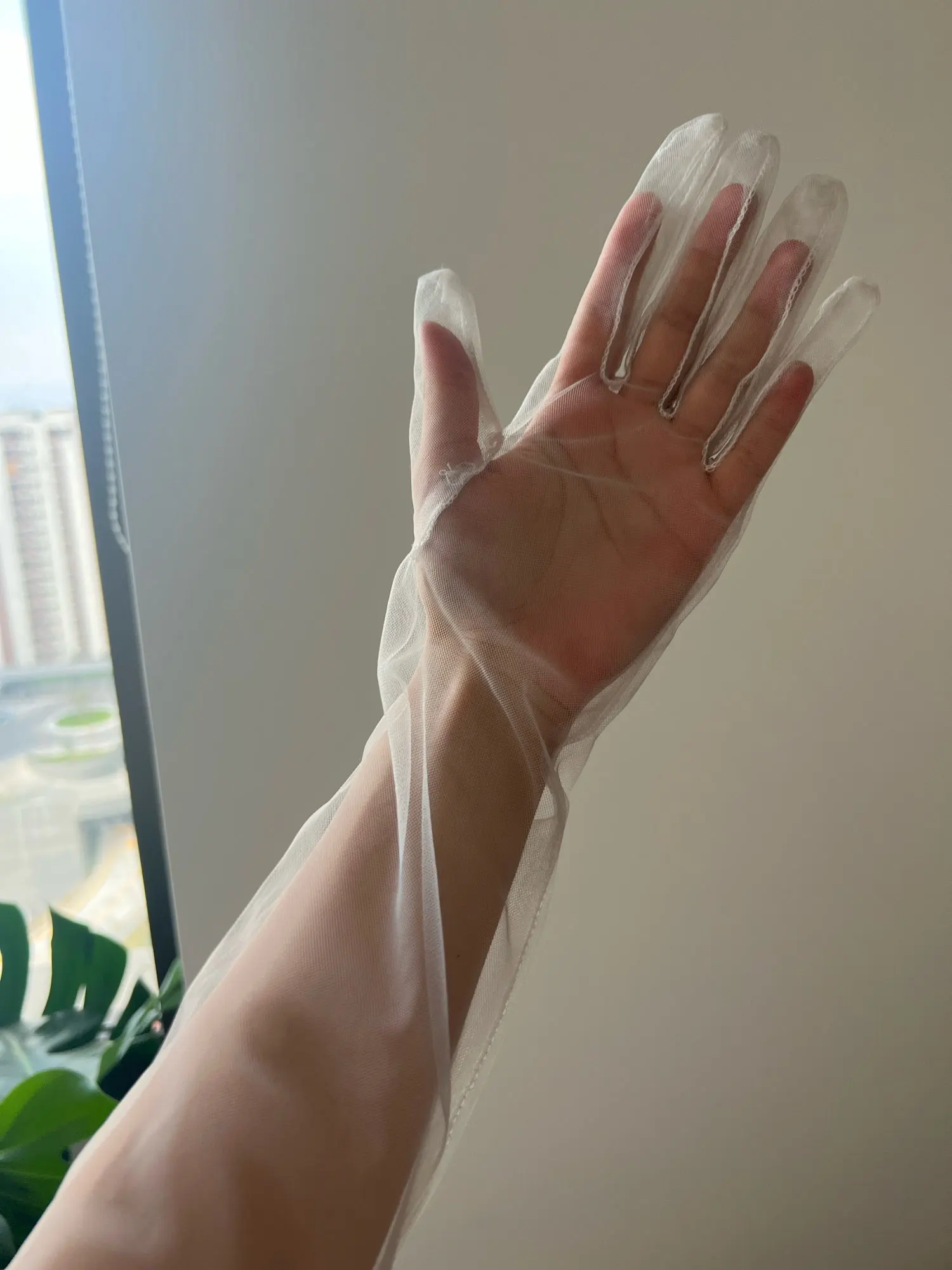 Тонкие прозрачные длинные перчатки с кружевом, 70 см