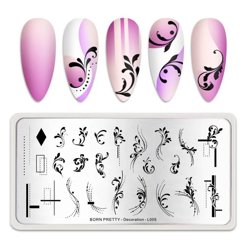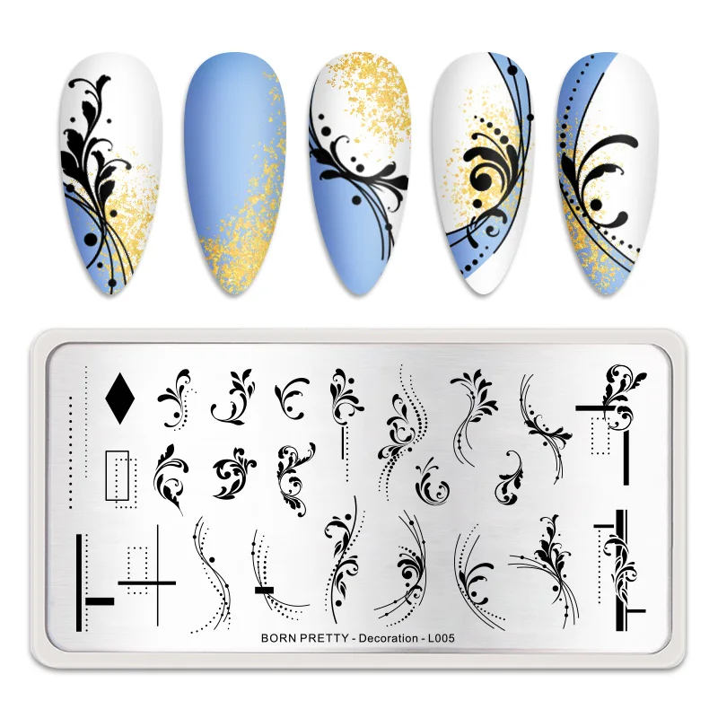 Штамповочные пластины BORN PRETTY с геометрическими цветами и полос...