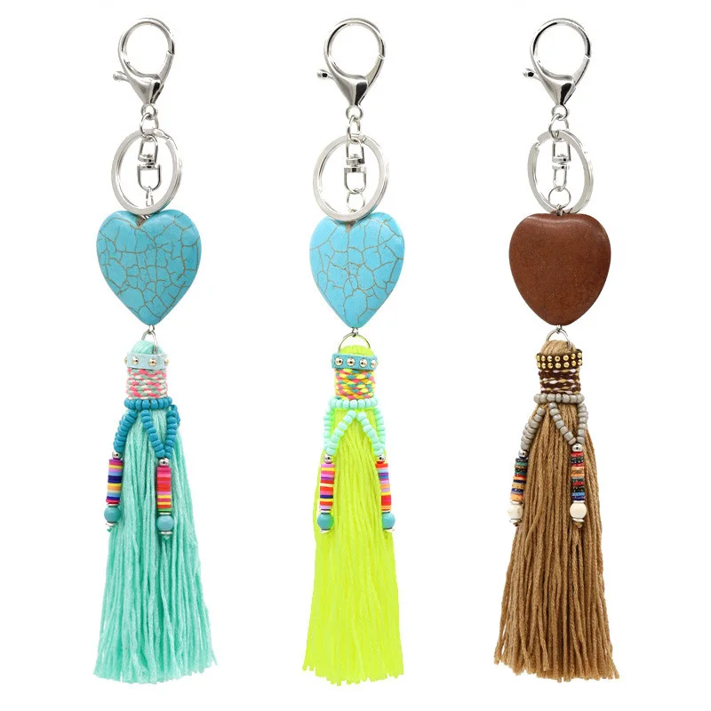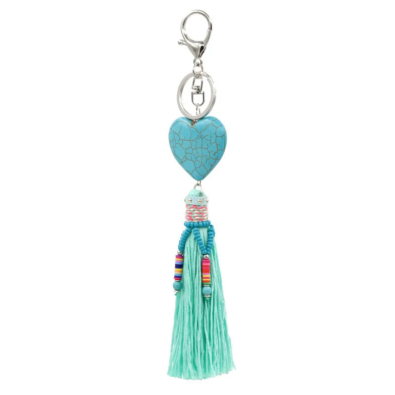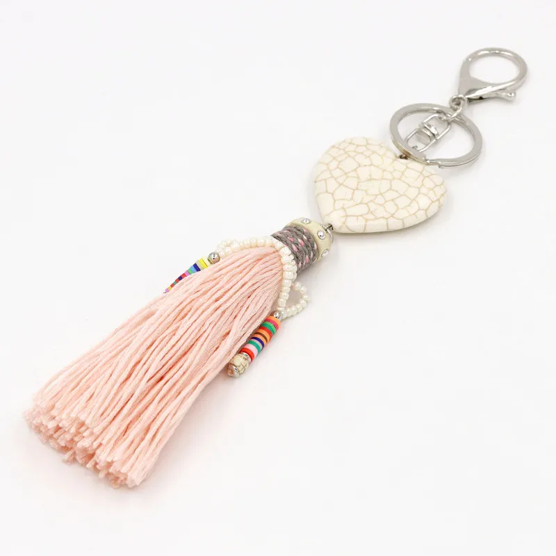 Цепочка для ключей в стиле бохо, аксессуары с подвеской в виде любовного сердца, камня, кисточки, кольцо для ключей, Женская сумочка, украшение для автомобиля
