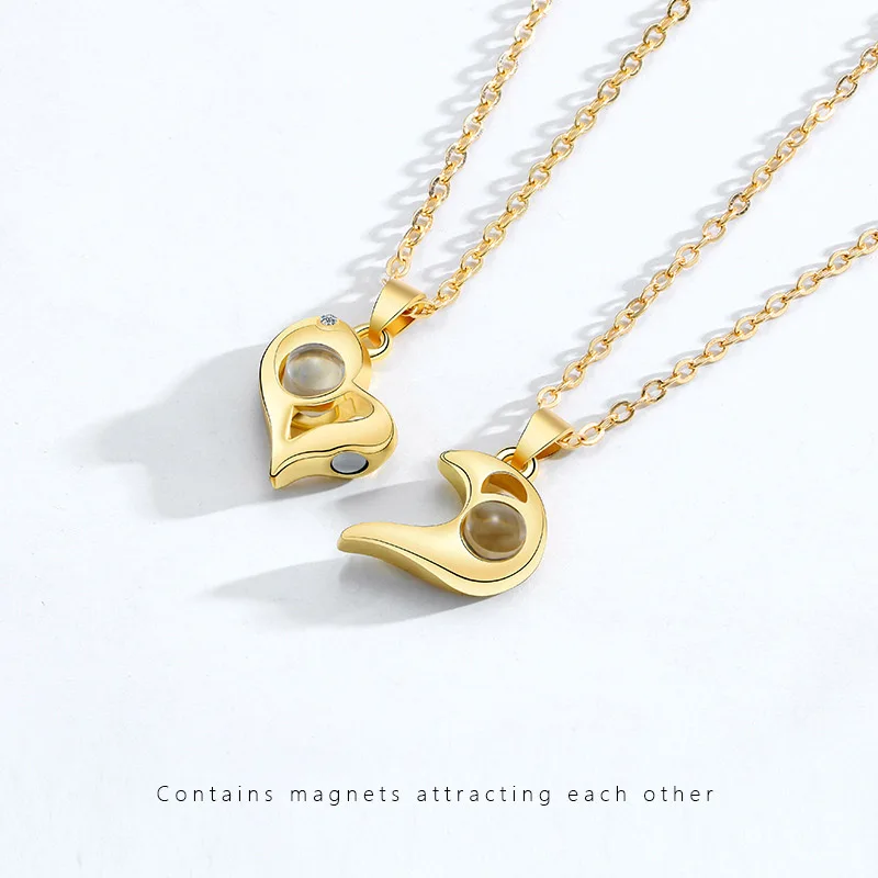 Модное ожерелье с подвеской-проектором Я люблю тебя, 2 шт.компл., колье-чокер с подвеской на магните, солнце, луну, сердца, цепочка для влюбленных Женщин, Ювелирное Украшение, воротник