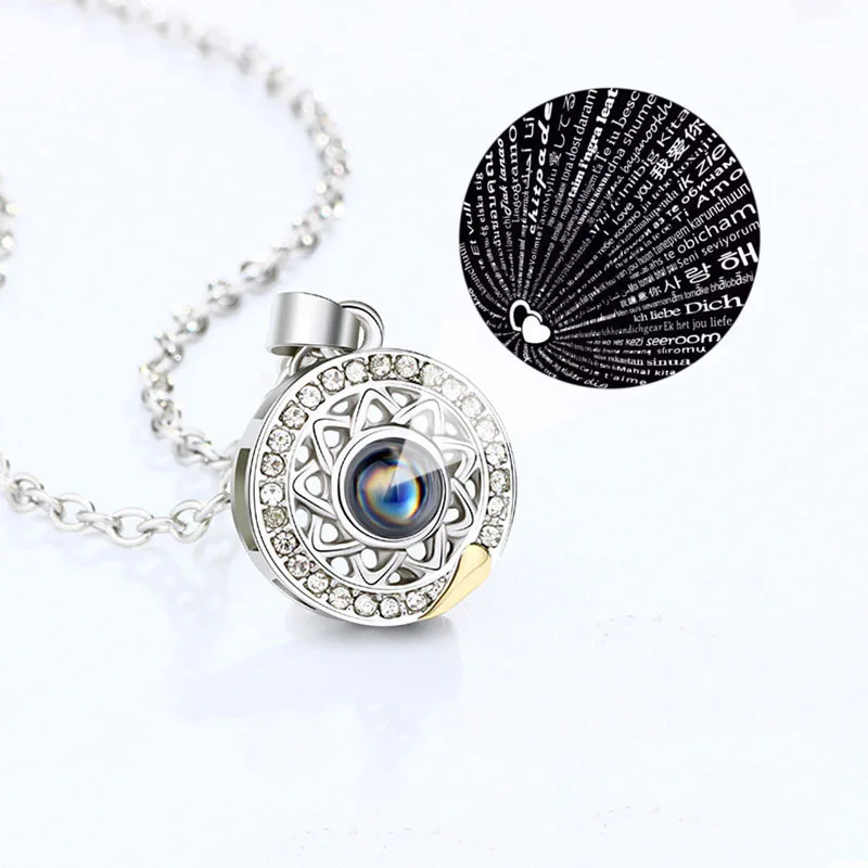 Ожерелье с проекцией Я люблю тебя на 100 языках, солнце и луна, пам...
