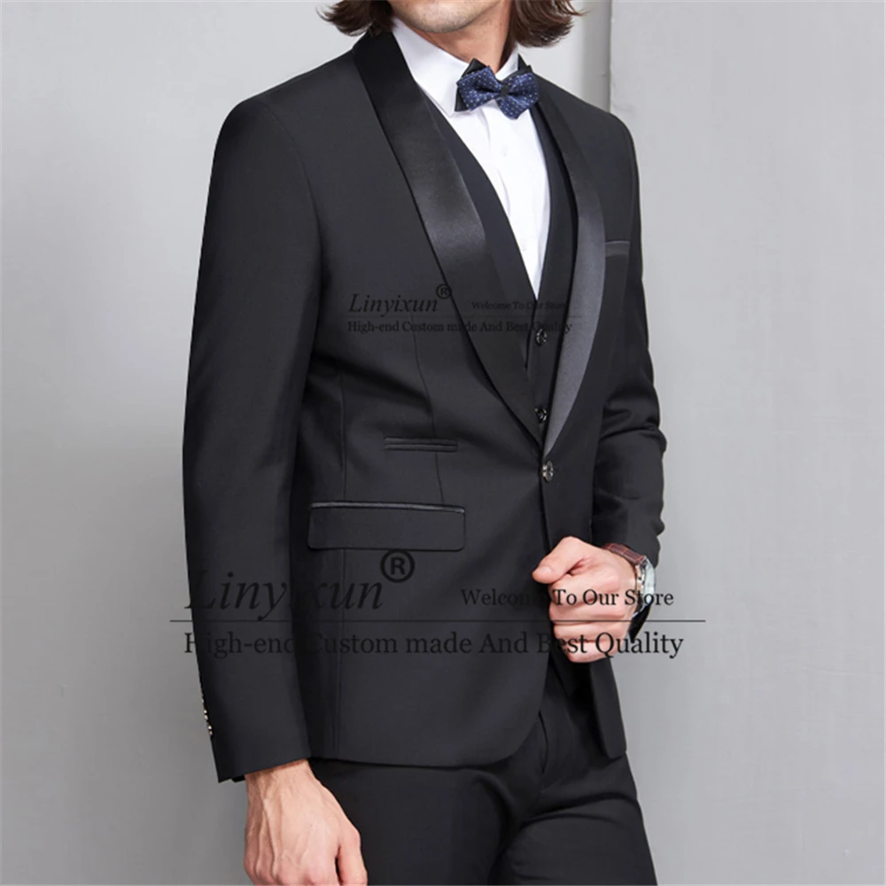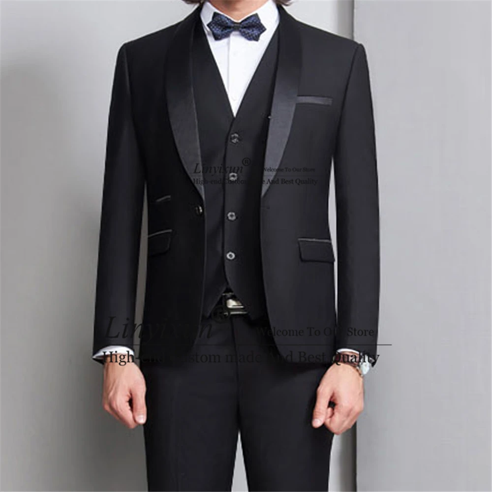 Классические черные мужские костюмы, смокинг для жениха, смокинг для шафера, 3 предмета, куртка, жилет, брюки, комплект для вечерние ринки, блейзер для выпускного вечера, мужской костюм для мужчин